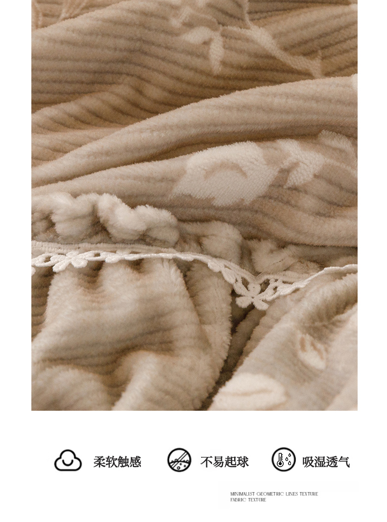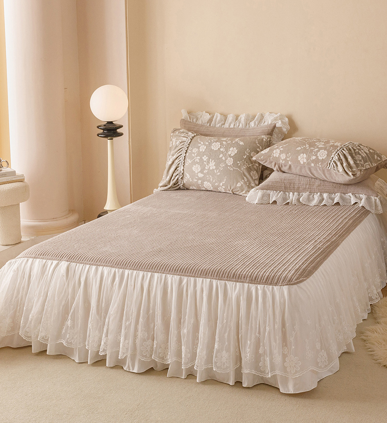 胜权家纺 2024秋冬新款5D雕花着色牛奶绒法式奶油风夹棉单床裙 麦咖