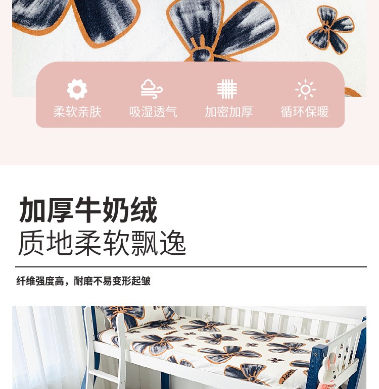 • 91家纺网 家纺一手货源 找家纺 小虾米 2024新款加厚上下床牛奶绒床笠款 蝶恋花
