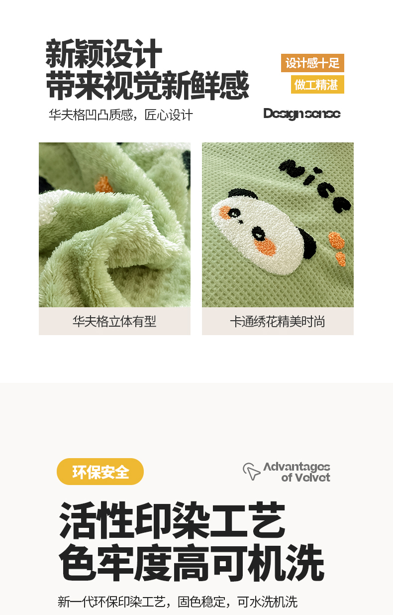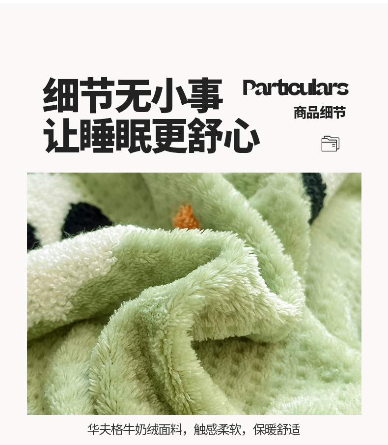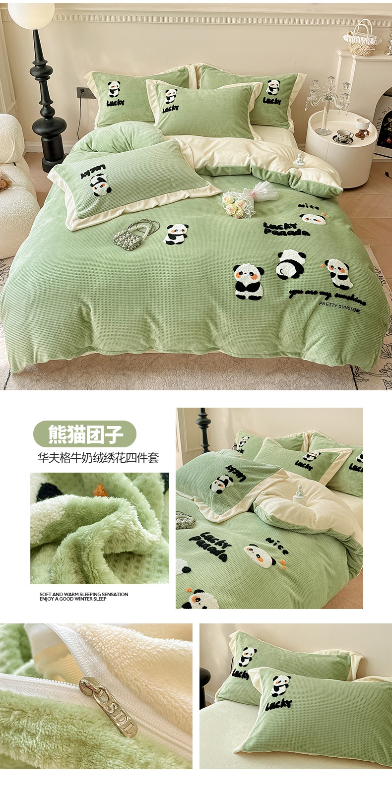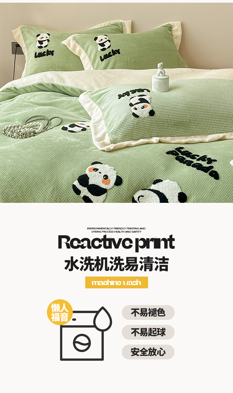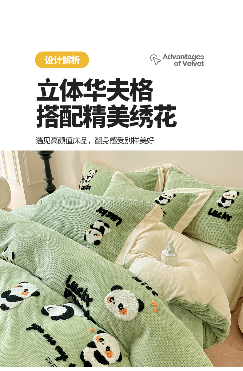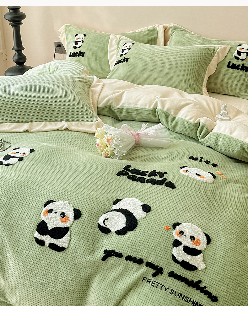 商品名称:典曼家纺 2024新款【华夫格绣花】牛奶绒四件套 熊猫团子