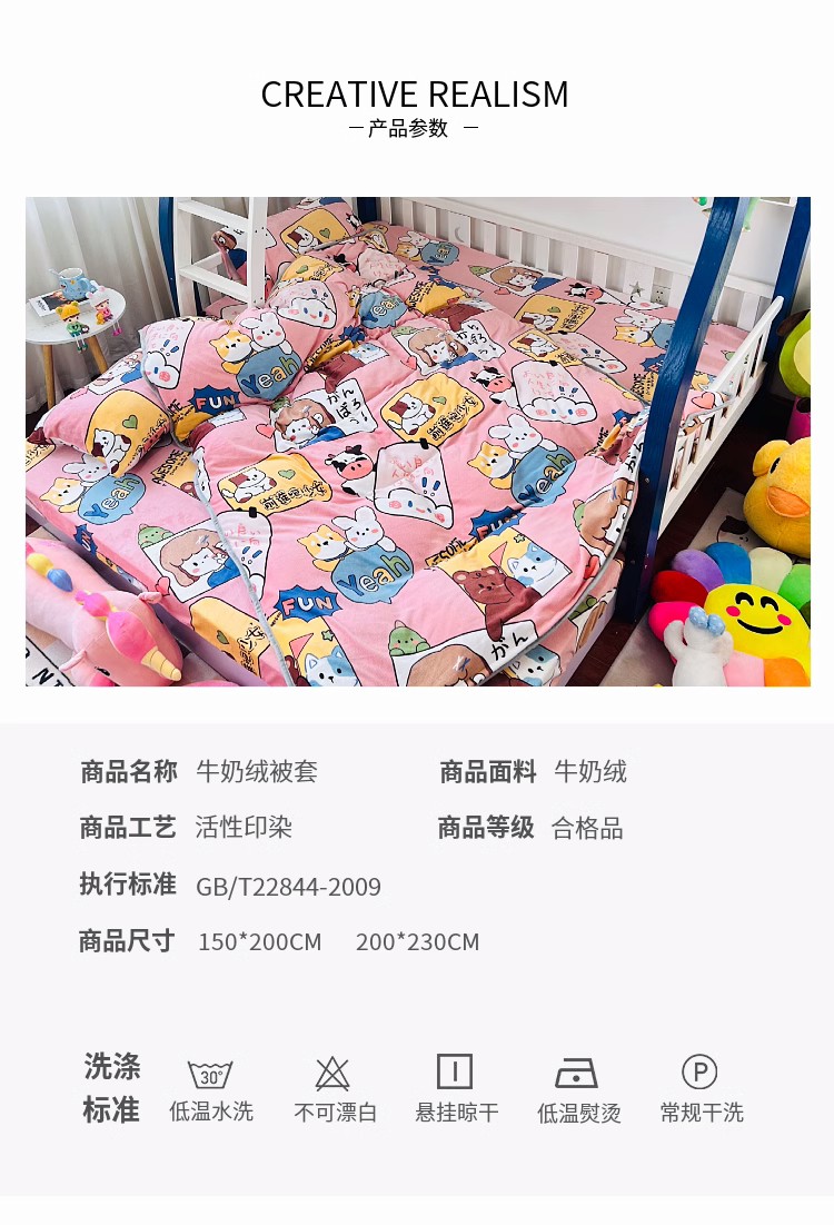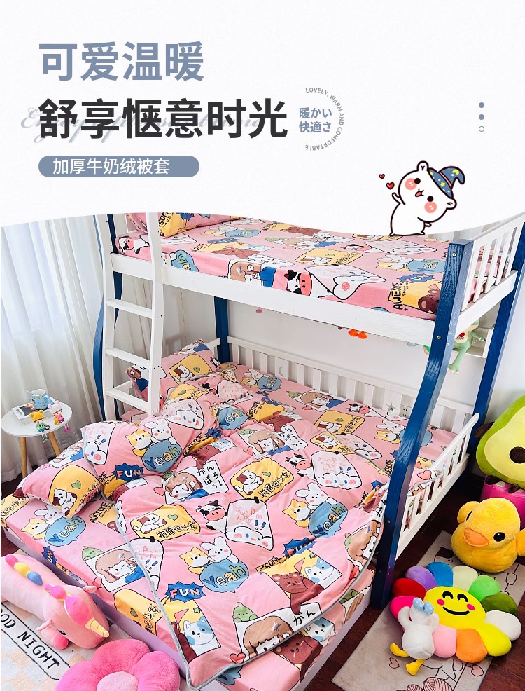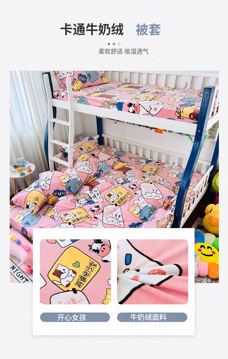 商品名称:小虾米 2024新款加厚上下床牛奶绒单被套 开心女孩