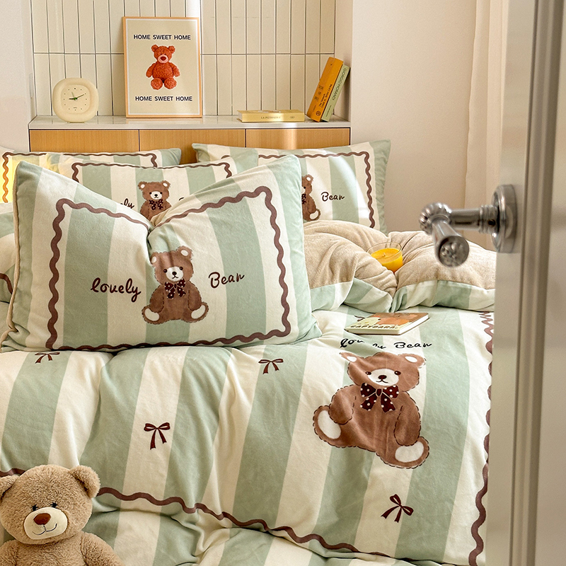 商品名称:2024新款大版卡通双面高克重牛奶绒床单款四件套 咖啡熊