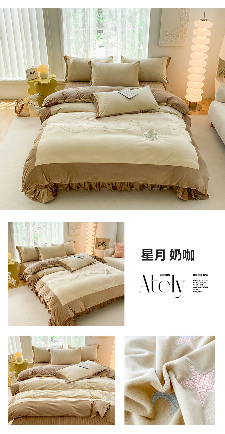 美伦美焕 2024新款宝宝绒星月床盖四件套 星月 奶咖