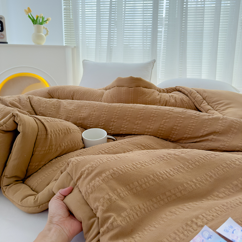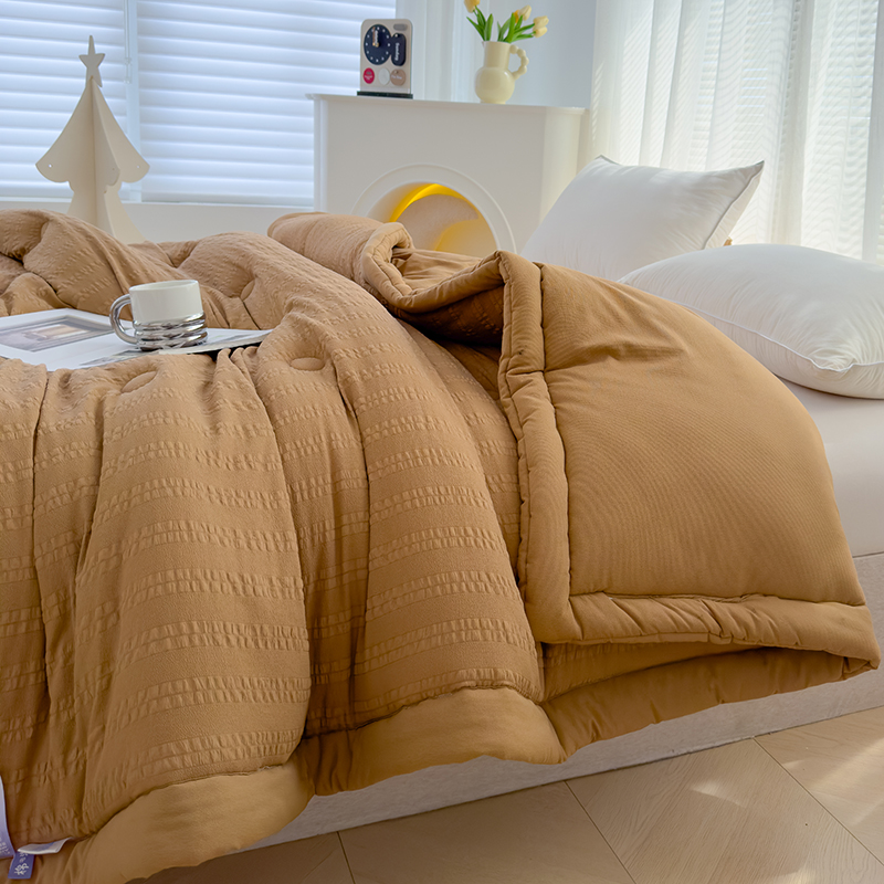 (总)蓝冰家纺 2025新款塔芙绒提花冬被被子被芯,米黄色,草绿色,卡灰色,卡其色,米白色,雾曼蓝,组合