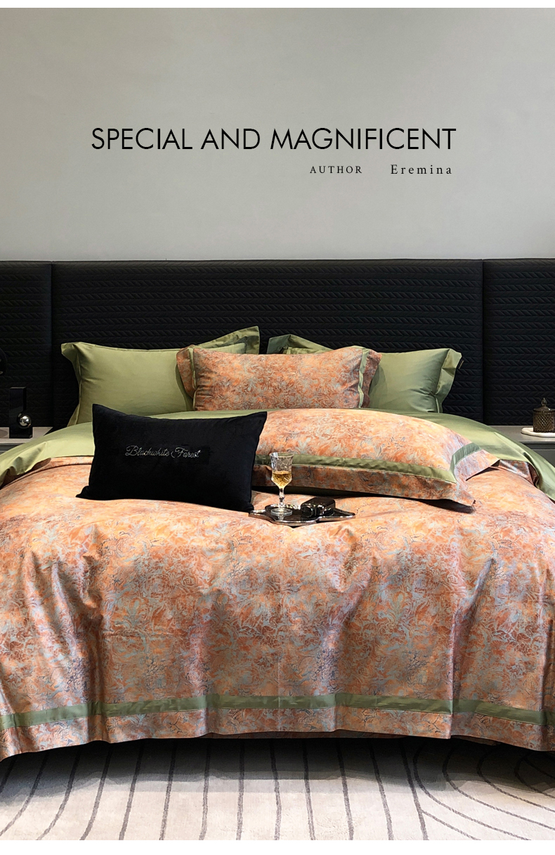 黑白森林2024款 50X50S高支天丝棉数码印花四件套天丝全棉,格伦黄,格伦绿,若瑶灰,羽笛蓝