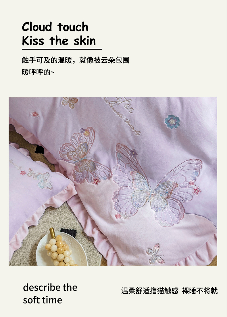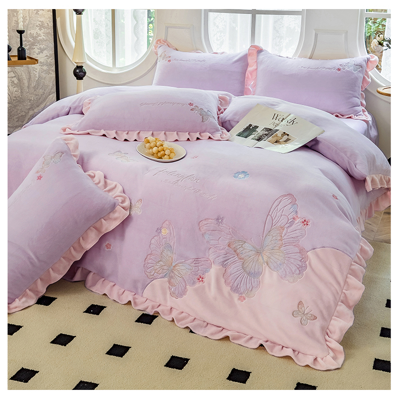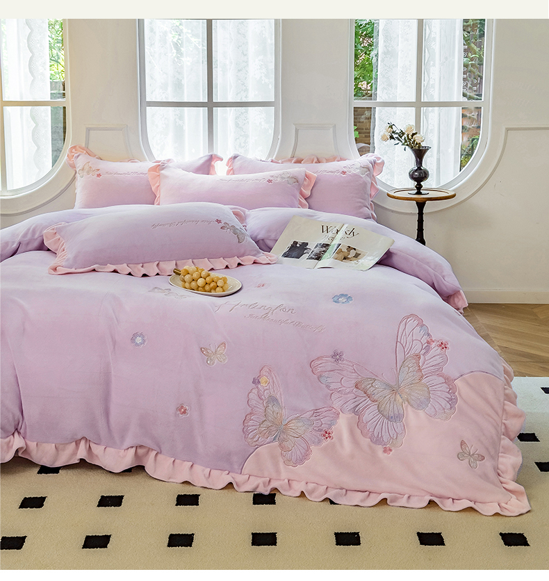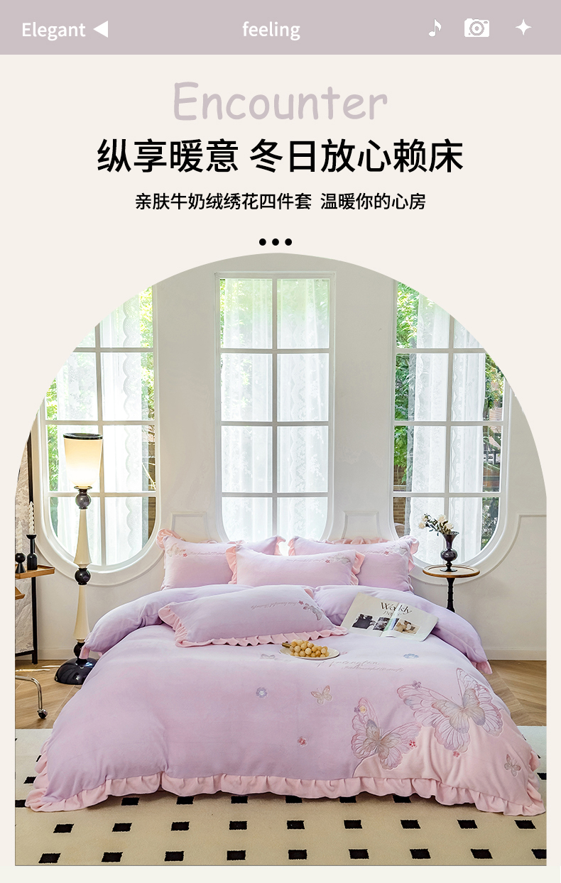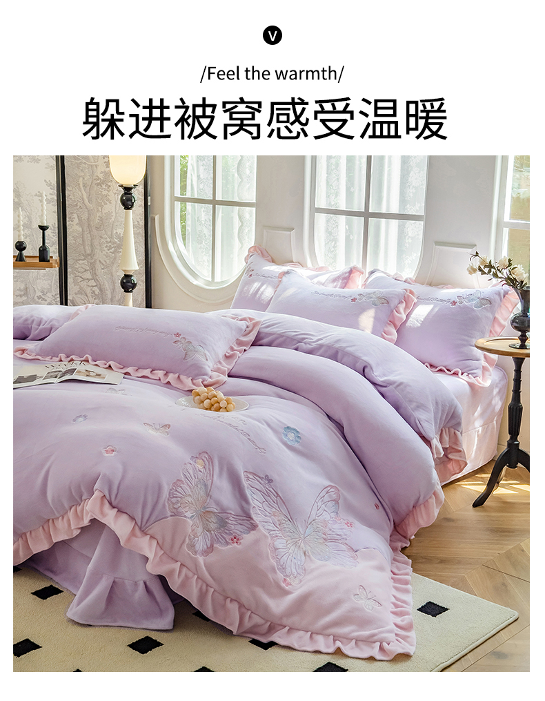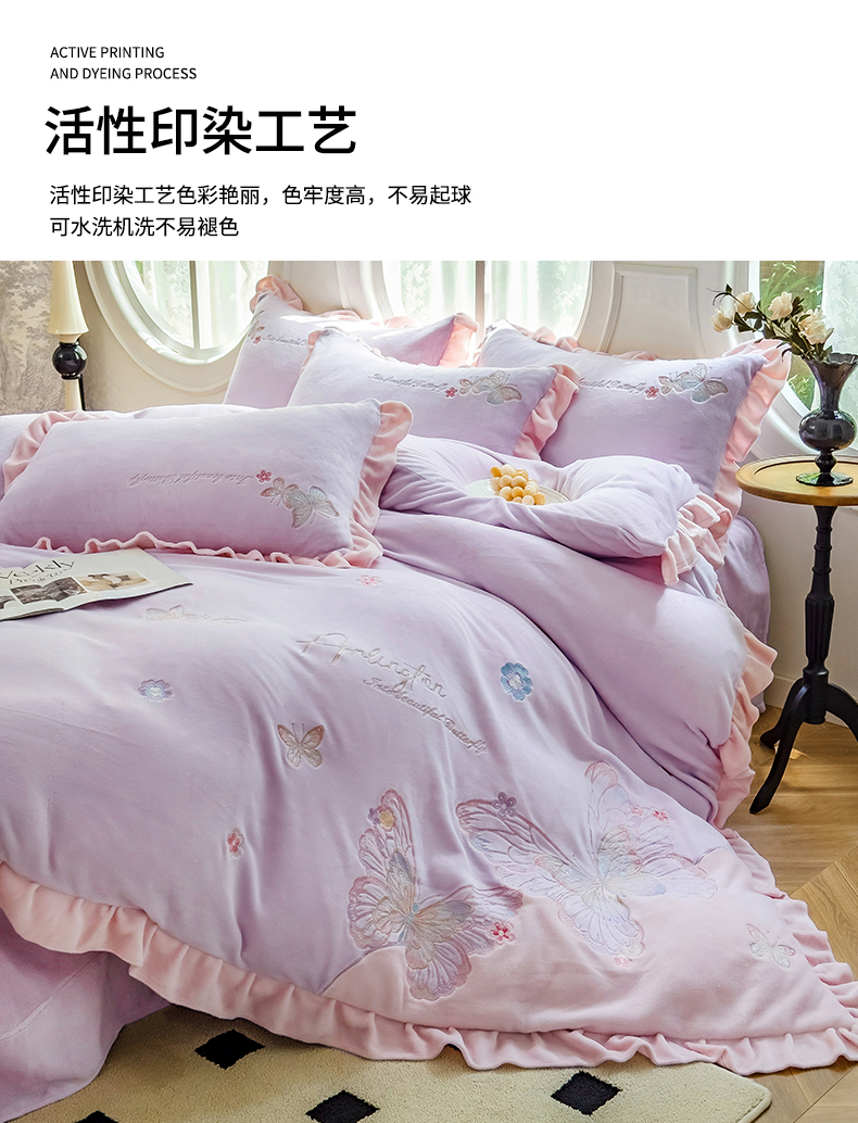 卡初家居(原微来) 2025秋冬新款A类高克重加厚保暖亲肤牛奶绒四件套--蝶舞系列(提供买家秀) 蝶舞-优雅紫