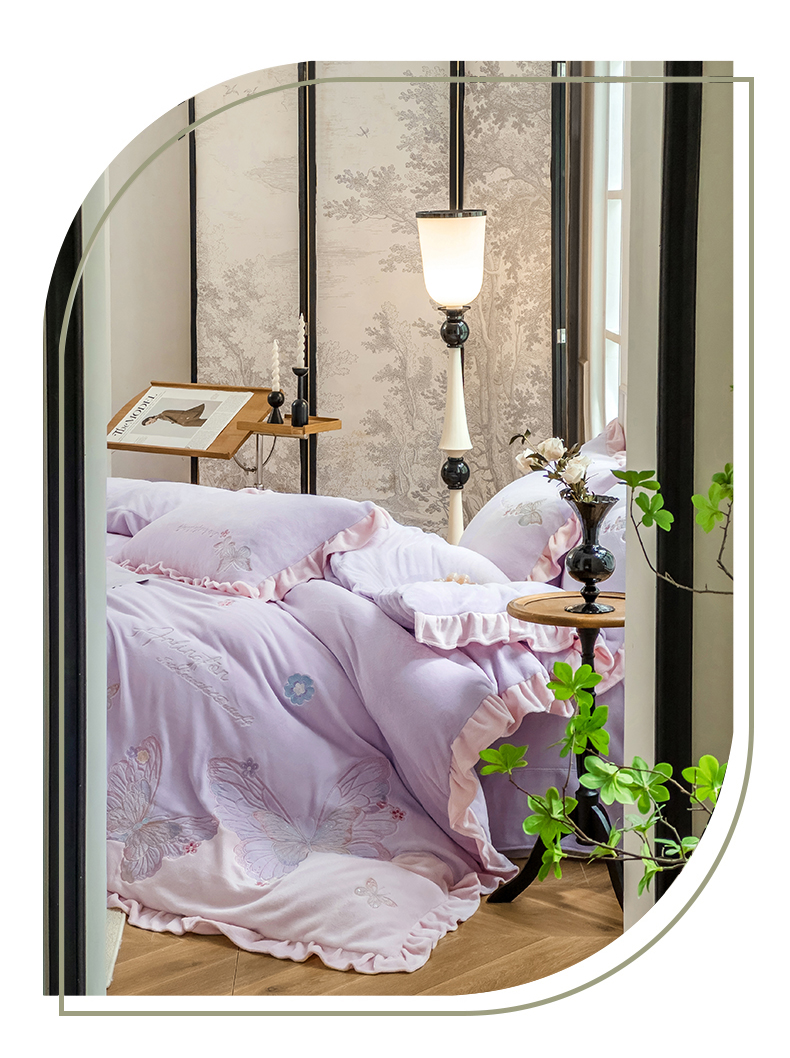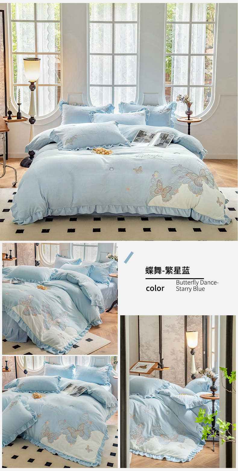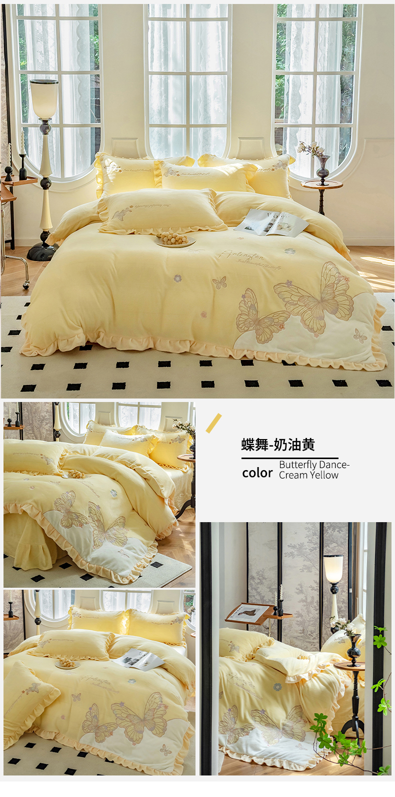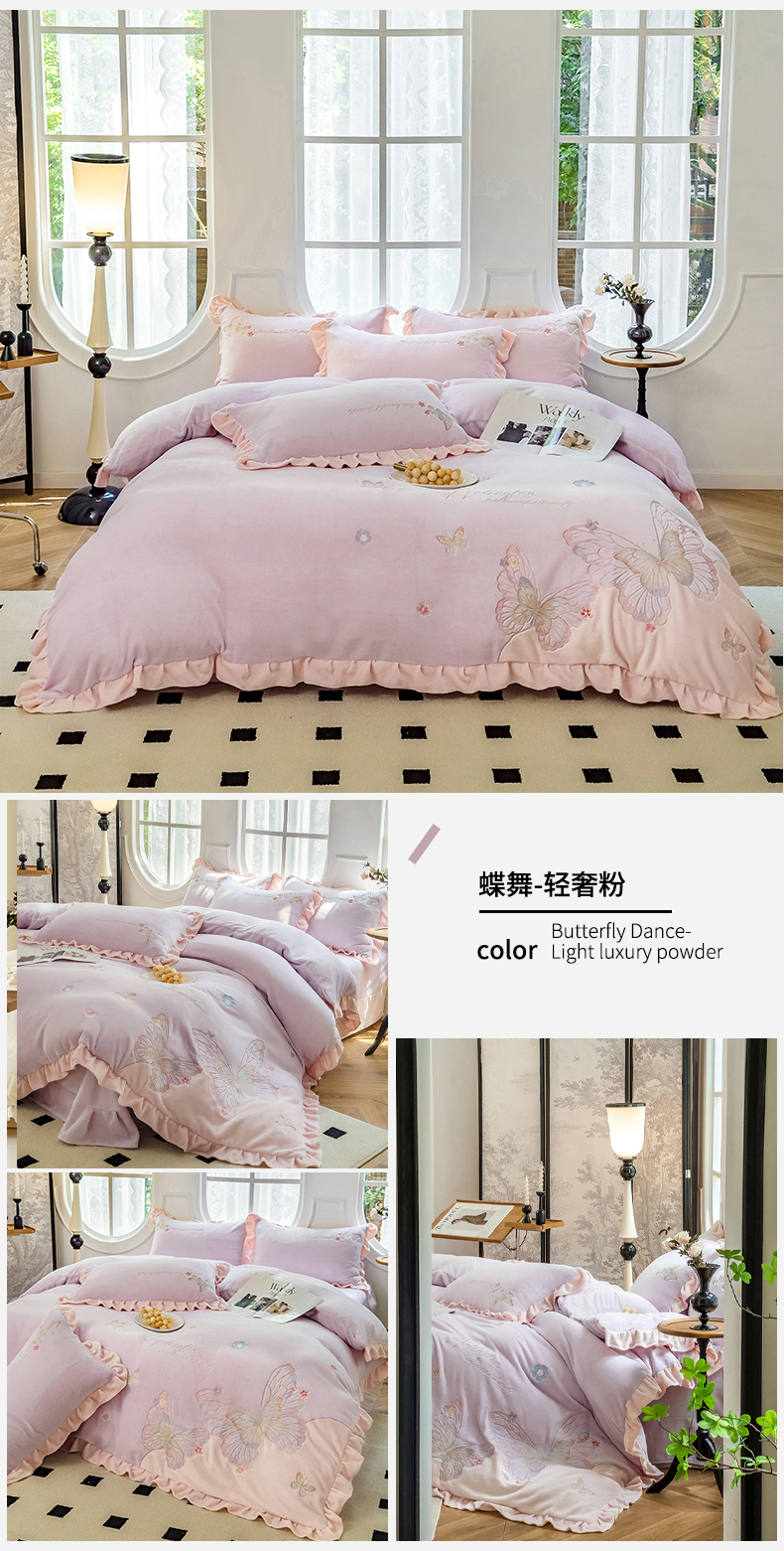 卡初家居(原微来) 2025秋冬新款A类高克重加厚保暖亲肤牛奶绒四件套--蝶舞系列(提供买家秀) 蝶舞-优雅紫