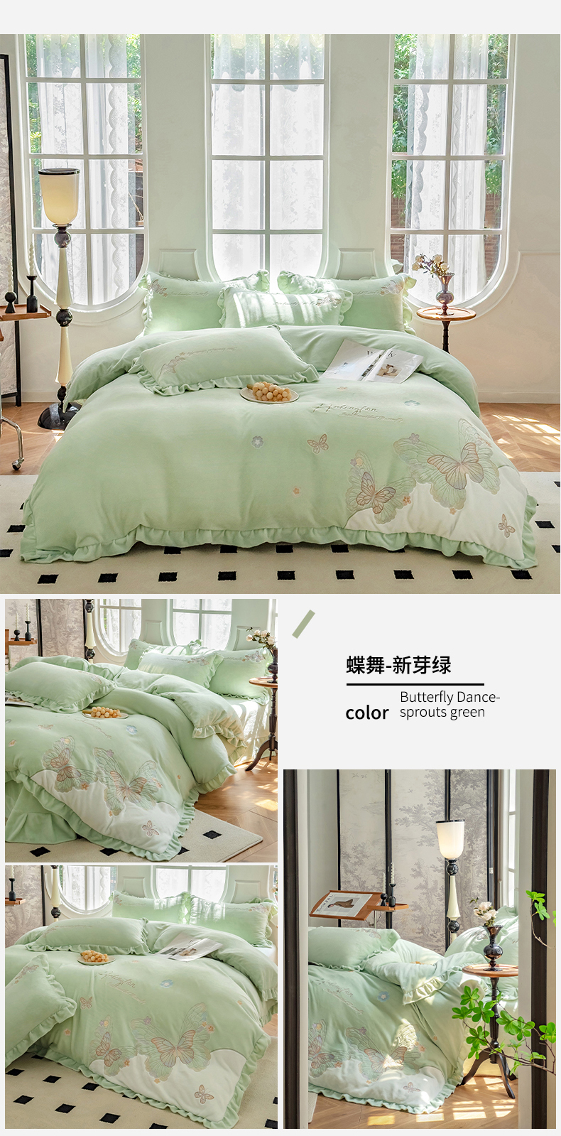 (总)卡初家居(原微来) 2025新款秋冬亲肤牛奶绒绣花四件套-多喜系列,多喜-豆沙,多喜-果绿,多喜-米黄,多喜-浅紫,多喜-桃粉,多喜-天蓝