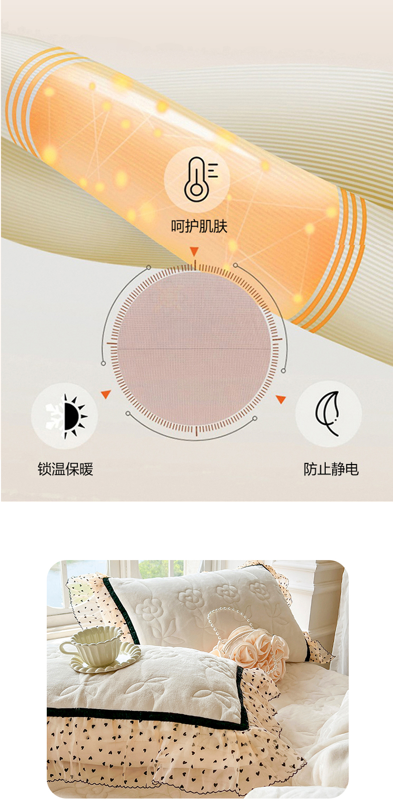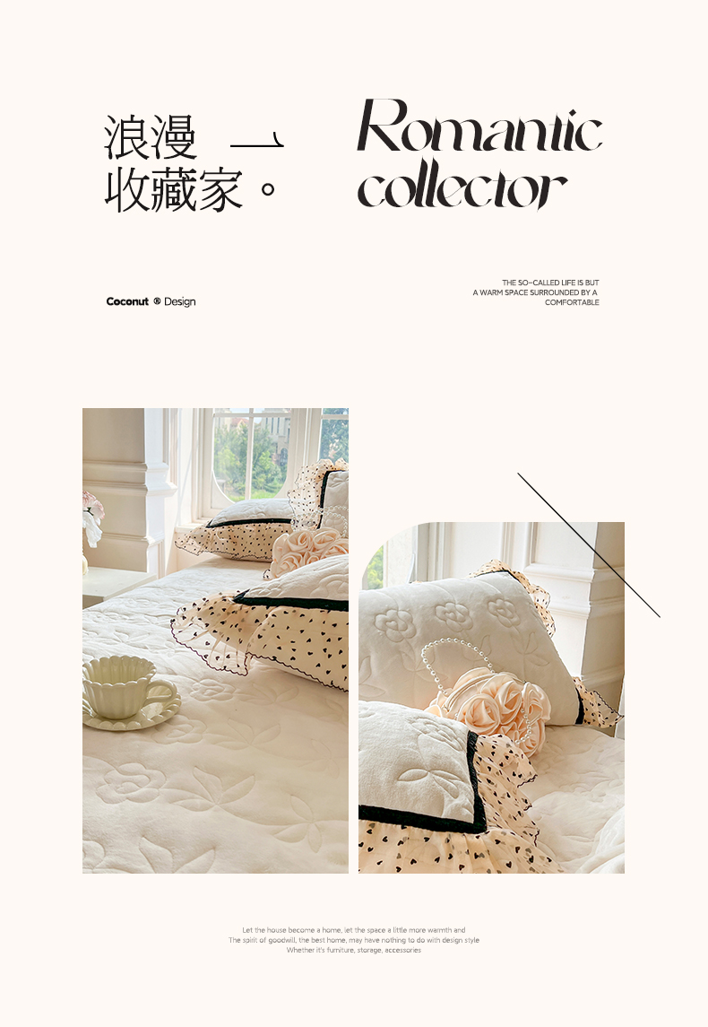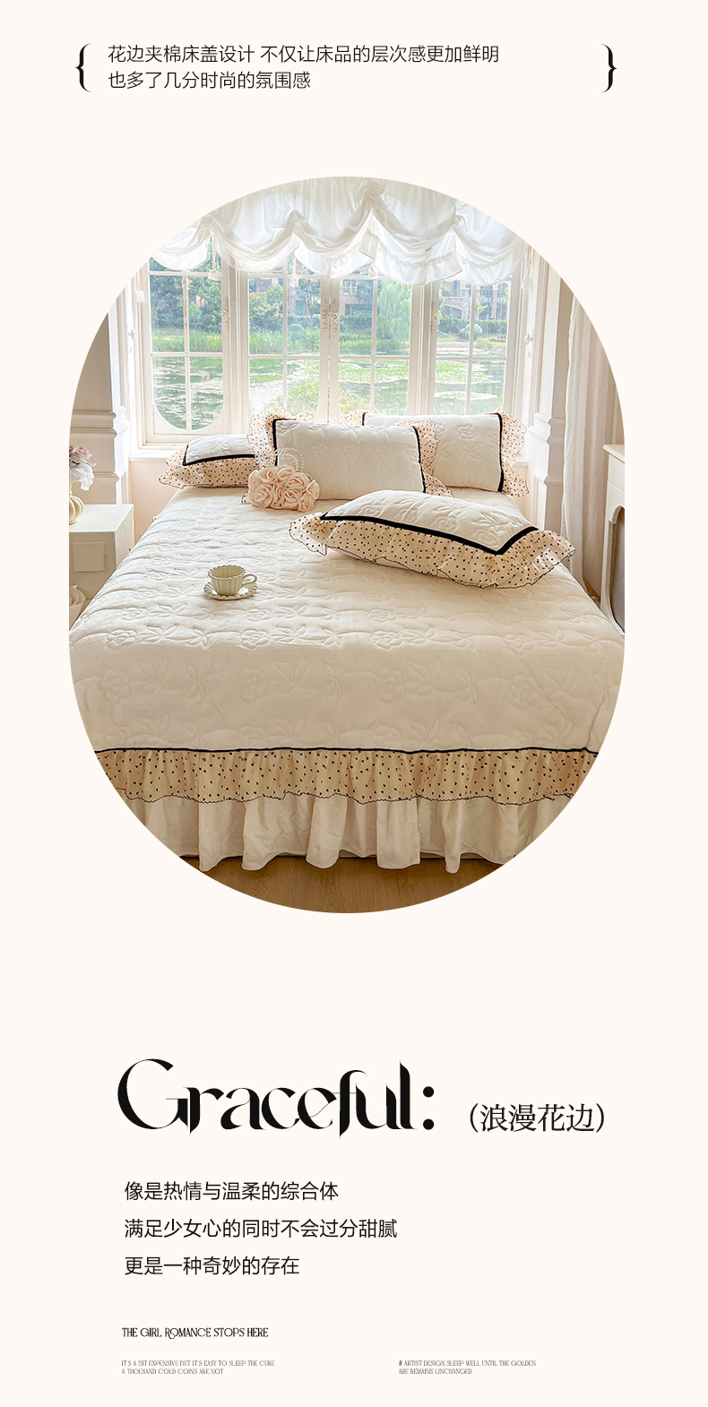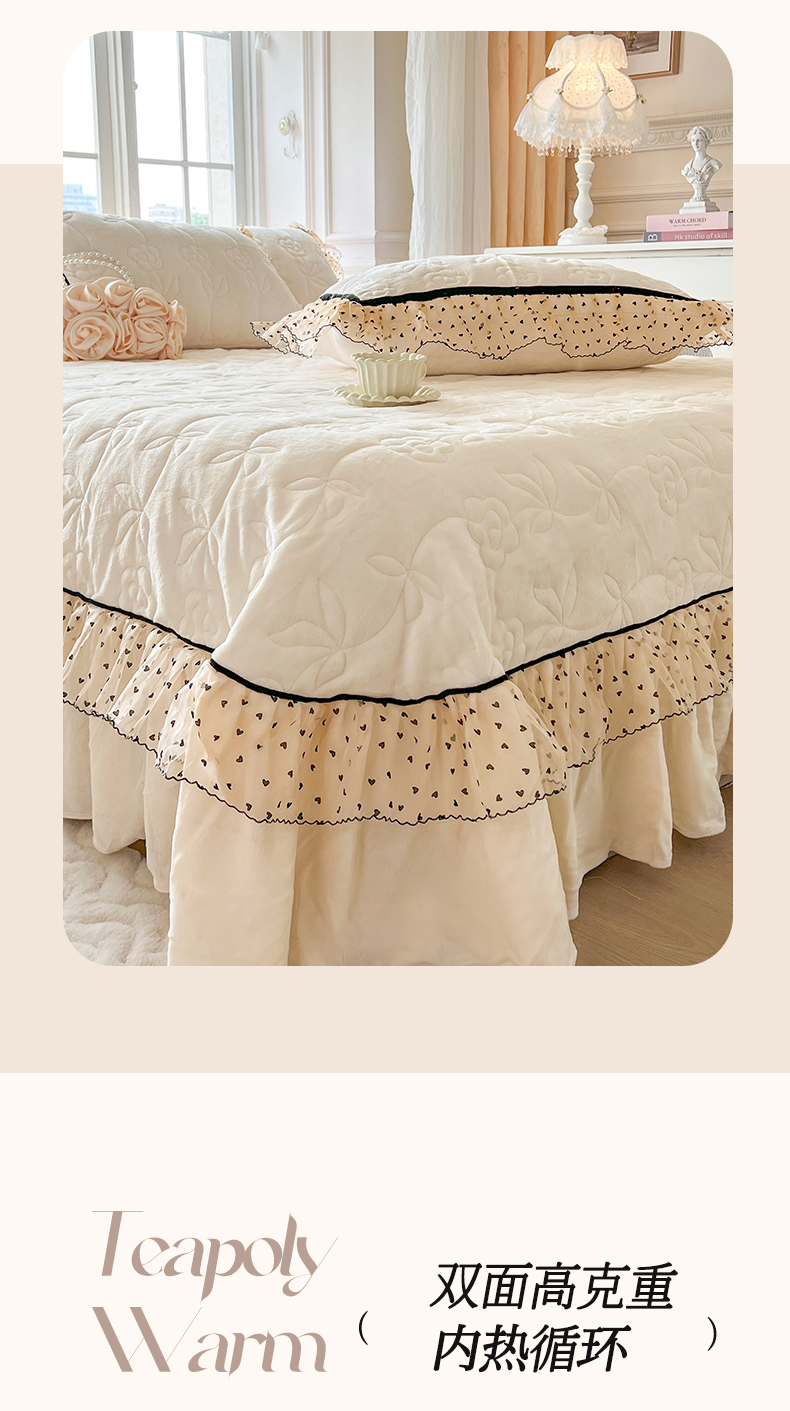 商品名称:网红馆(ck家纺) 2025新款牛奶绒花边床盖三件套-诺蔓 诺蔓-米白