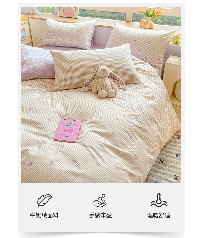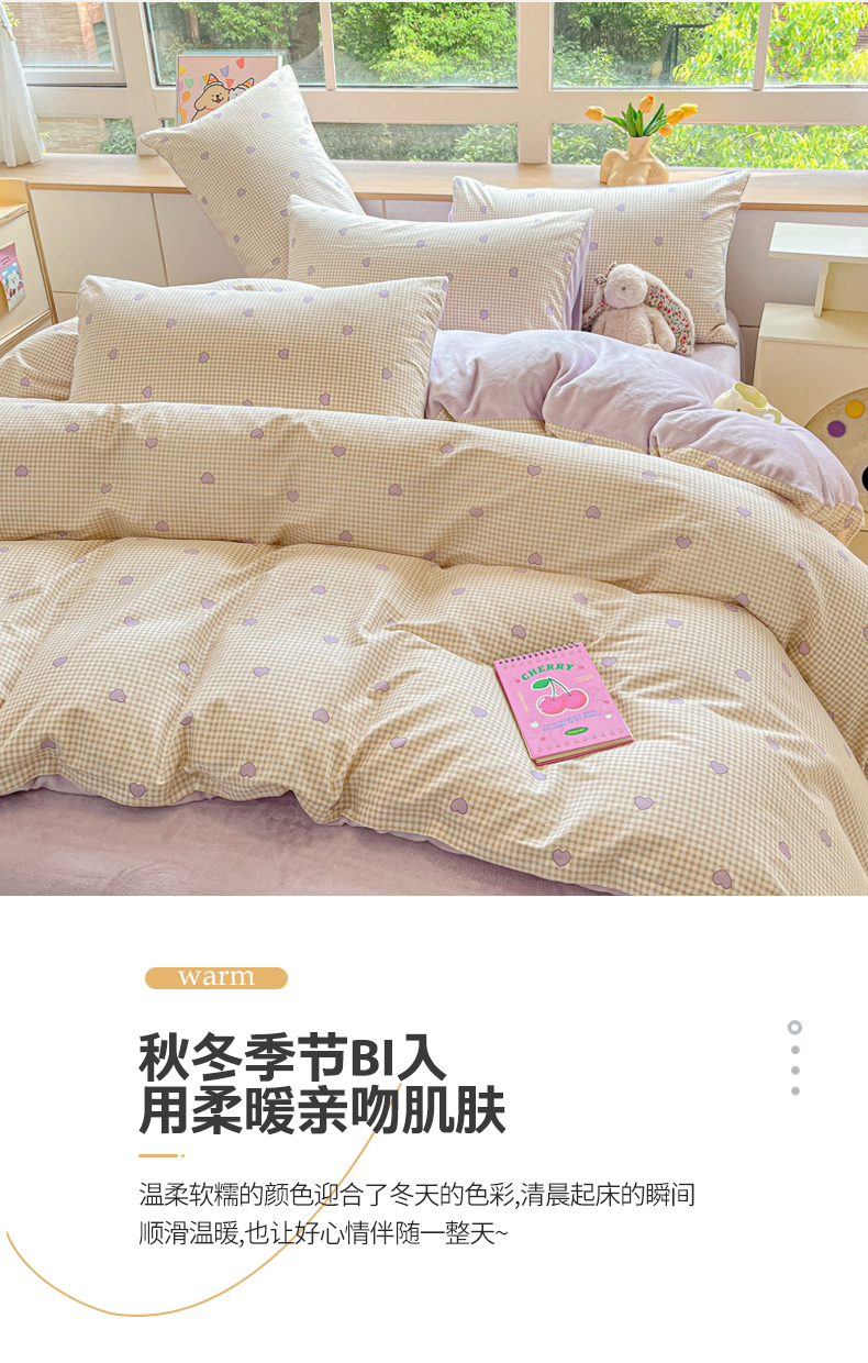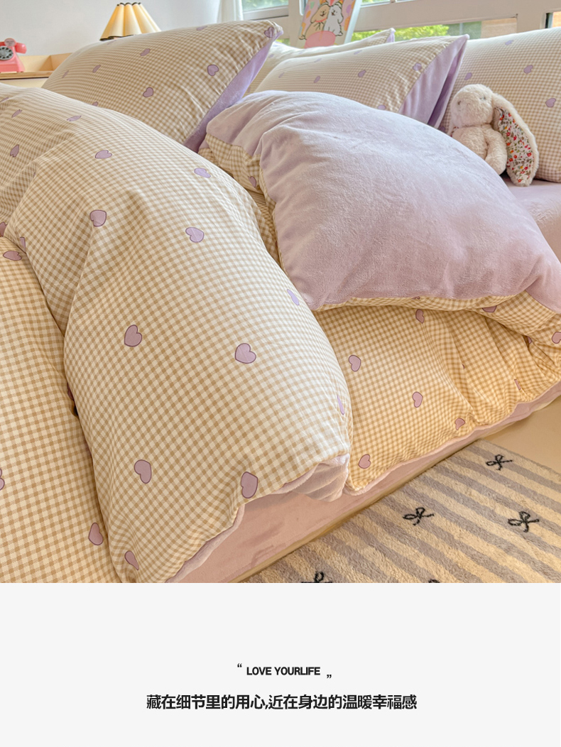 当前位置: 91家纺网 > 商品网购 > 床品套件 > 四件套 > 牛奶绒四件套 > 麦伦家居 2024秋冬新品 多功能床品全棉+牛奶绒四件套爱的小屋