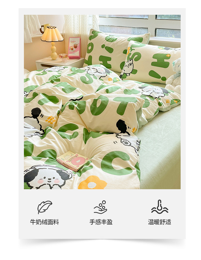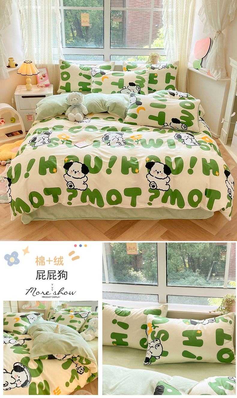当前位置: 91家纺网 > 商品网购 > 床品套件 > 四件套 > 牛奶绒四件套 > 麦伦家居 2024秋冬新品 多功能床品全棉+牛奶绒四件套 屁屁狗