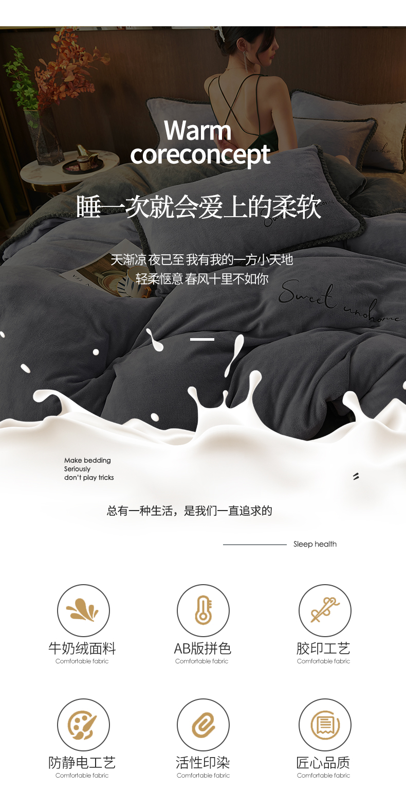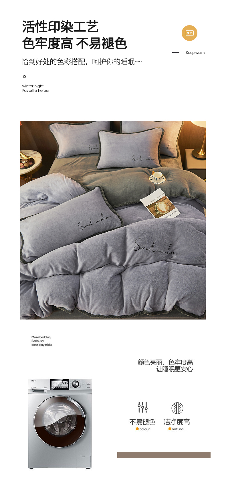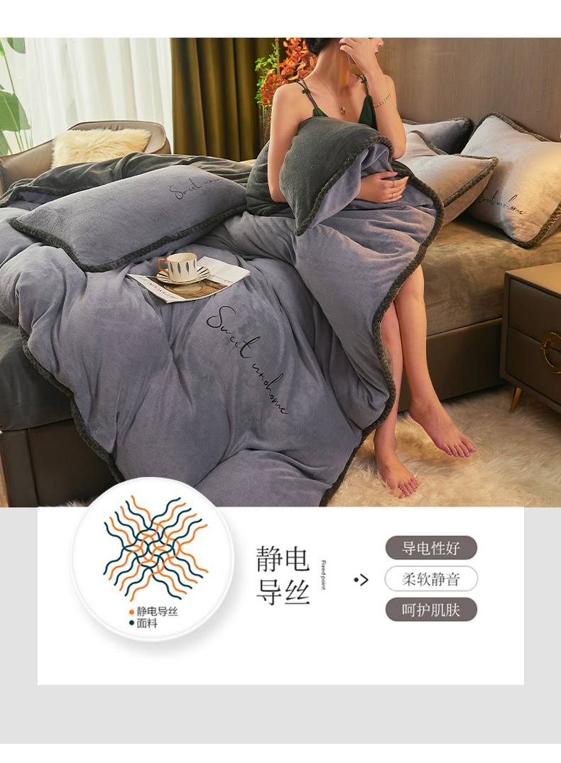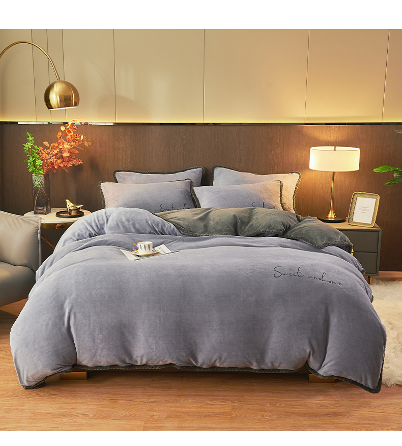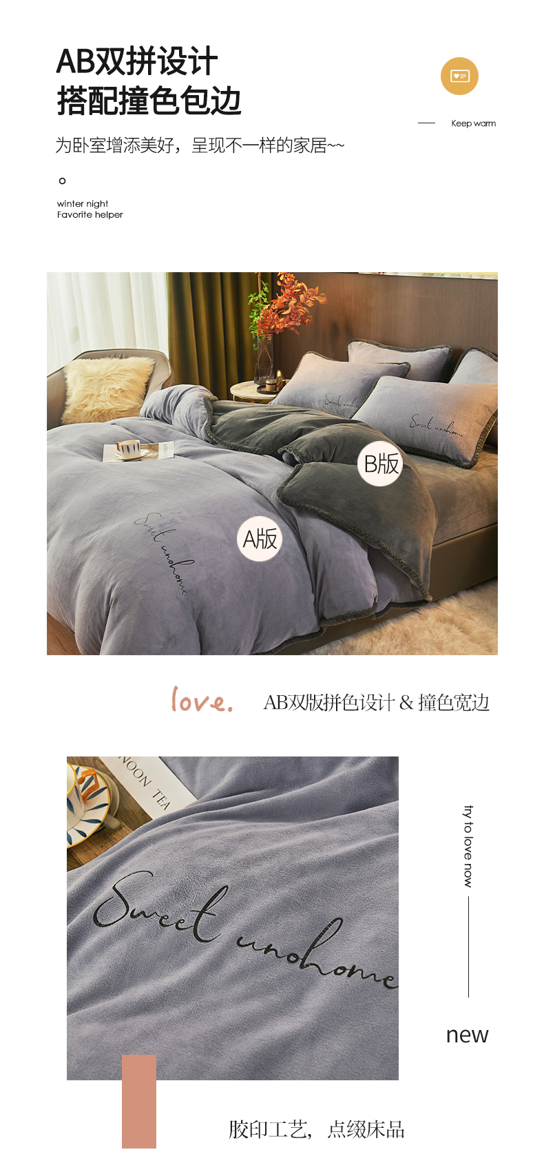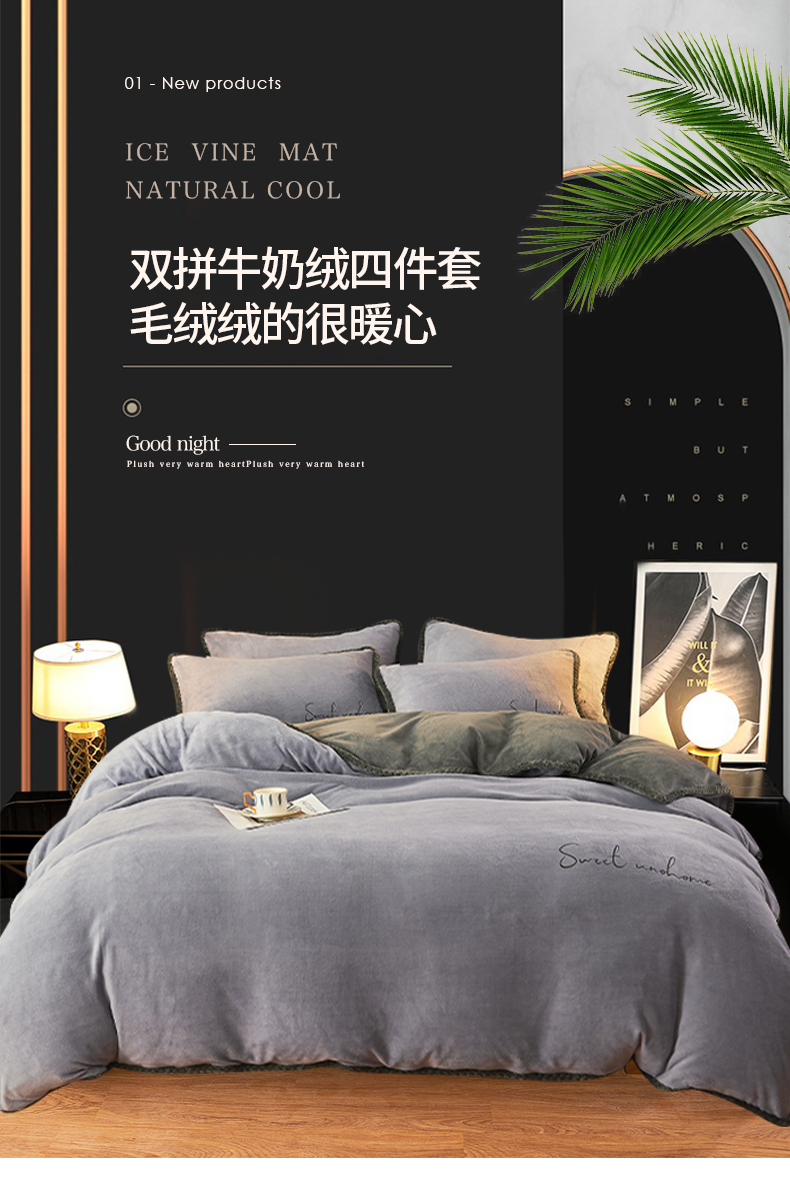 当前位置: 91家纺网 > 商品网购 > 床品套件 > 四件套 > 牛奶绒四件套 > 吾诺 2024新款双拼色牛奶绒四件套 风格一 双拼兰灰