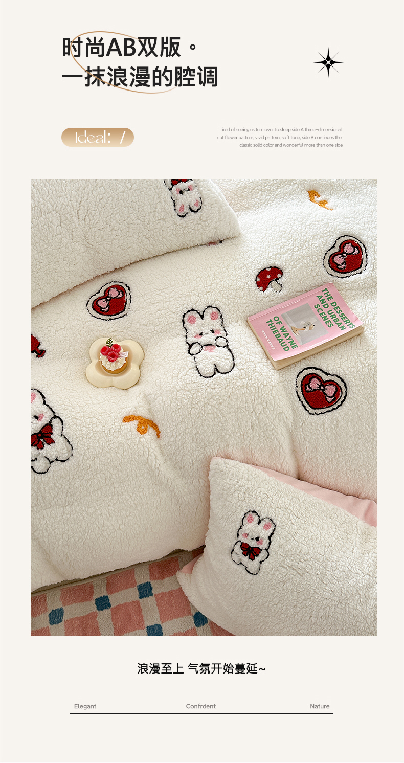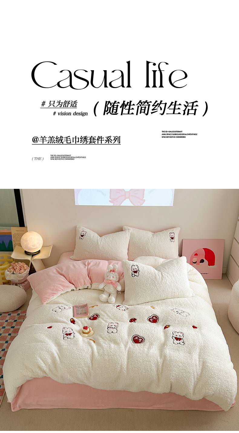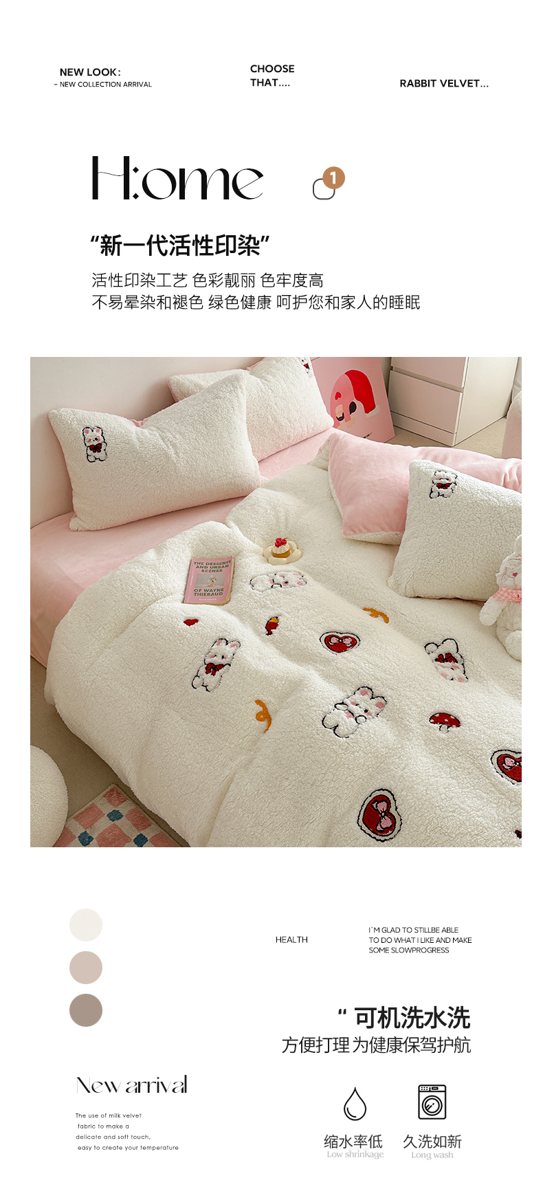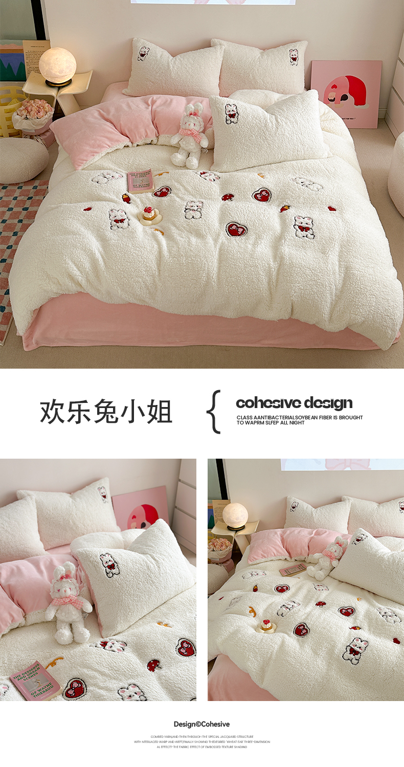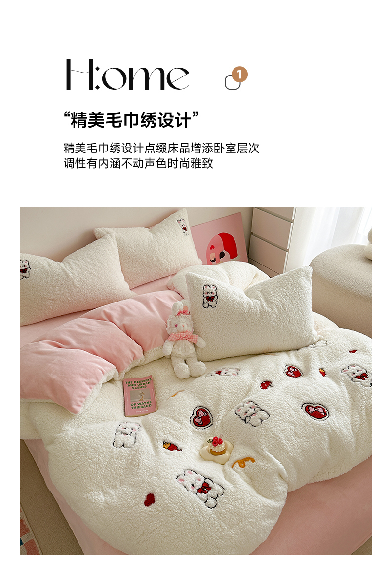 当前位置: 91家纺网 > 商品网购 > 床品套件 > 四件套 > 牛奶绒四件套 > 蜜柚 2024新款高克重羊羔绒牛奶绒毛巾绣四件套 欢乐兔小姐