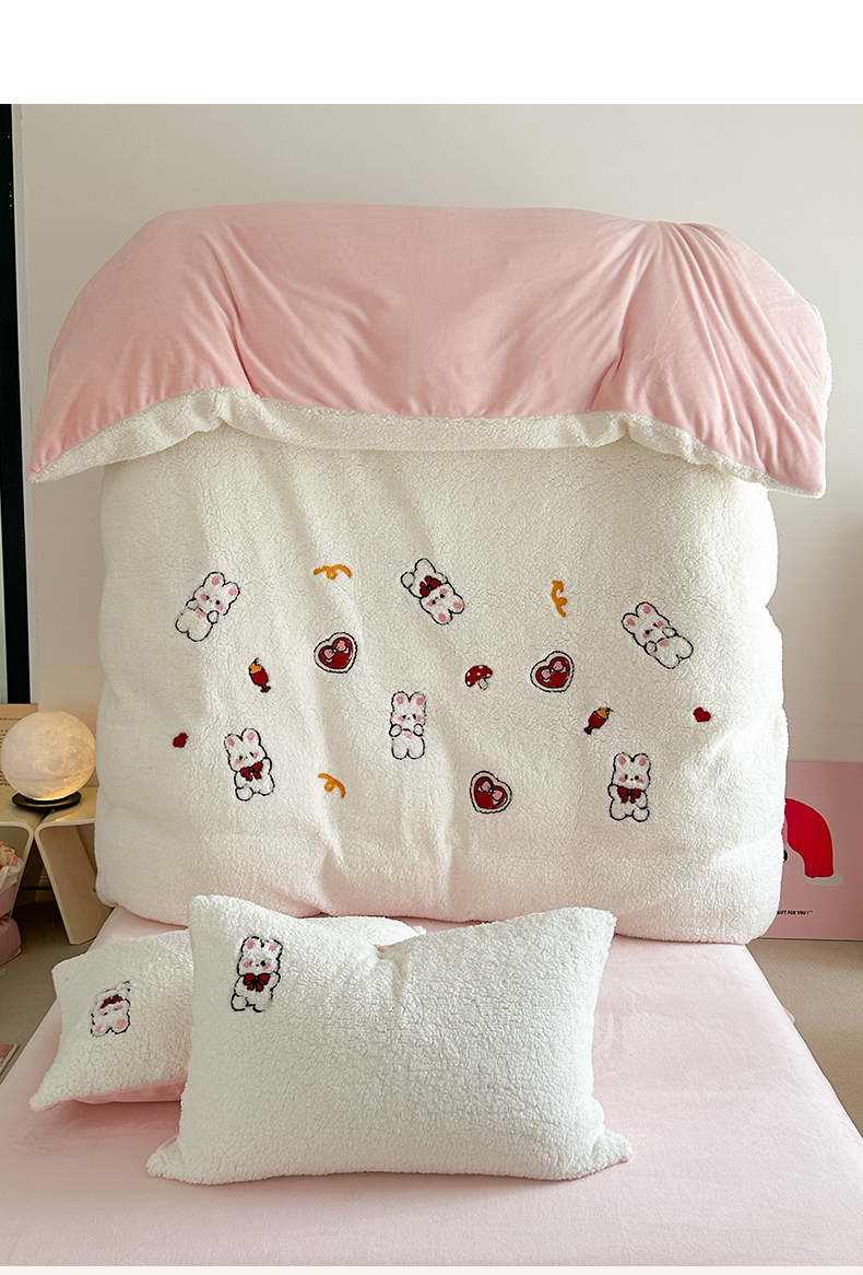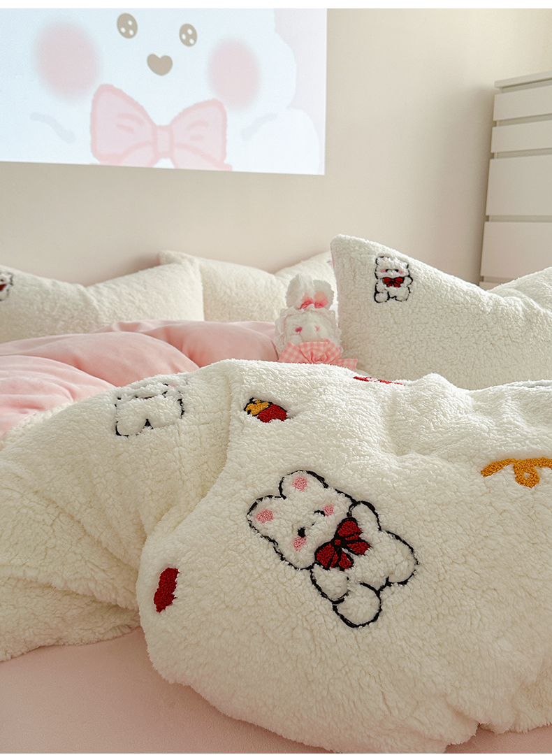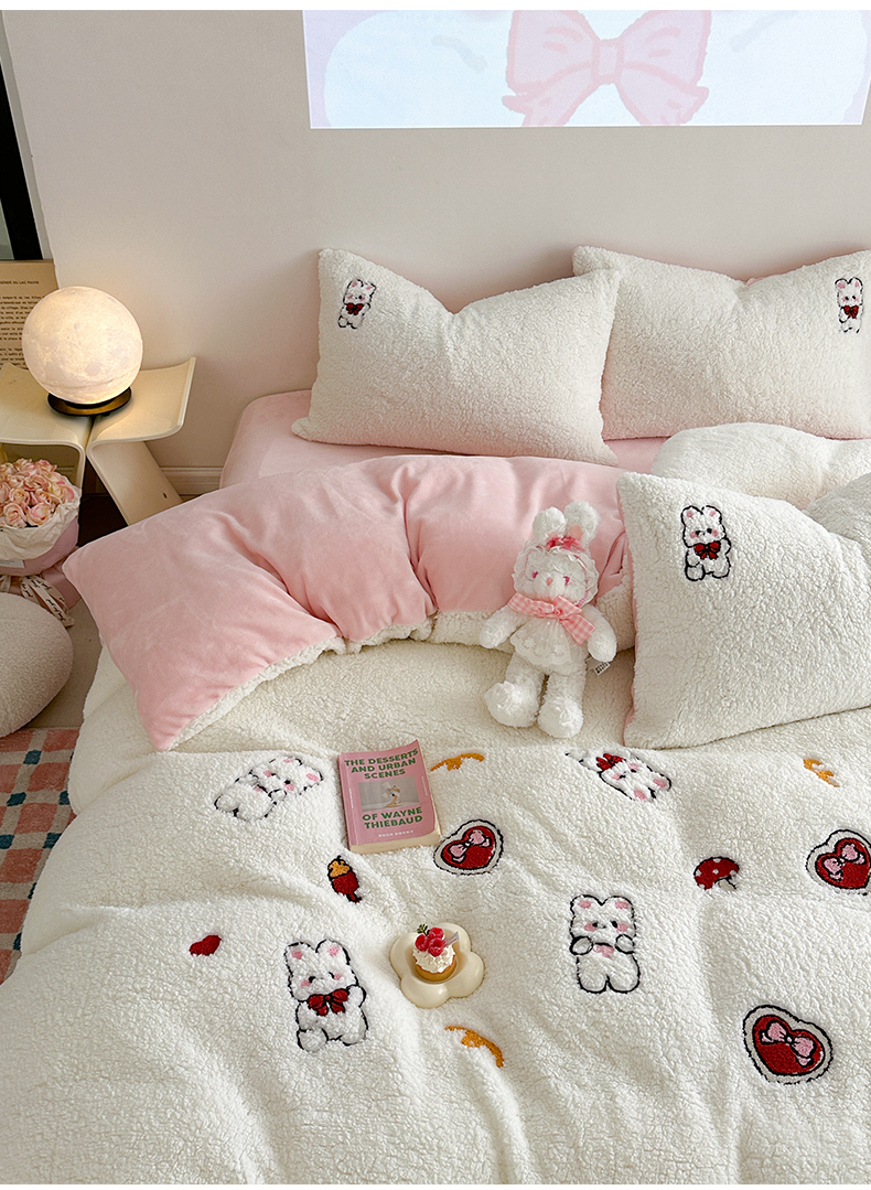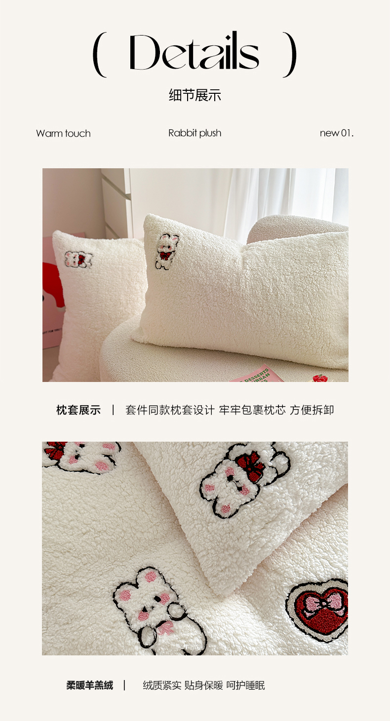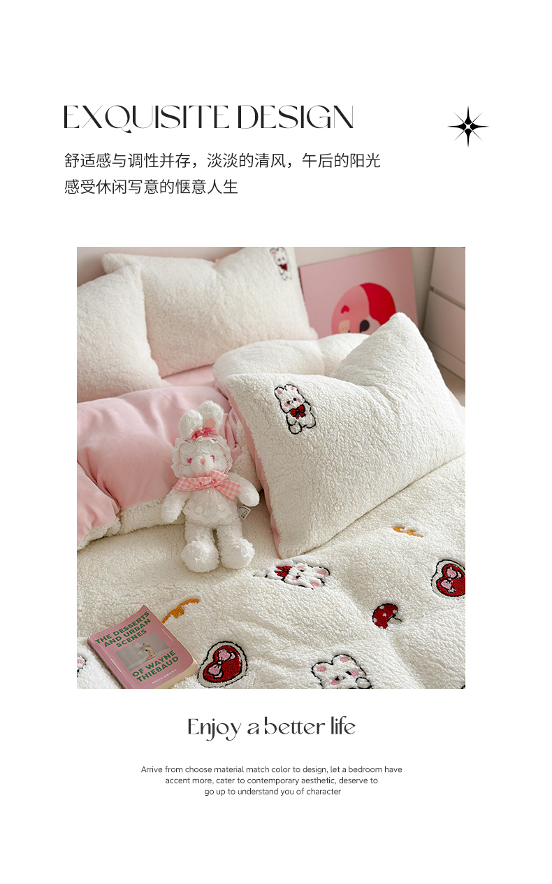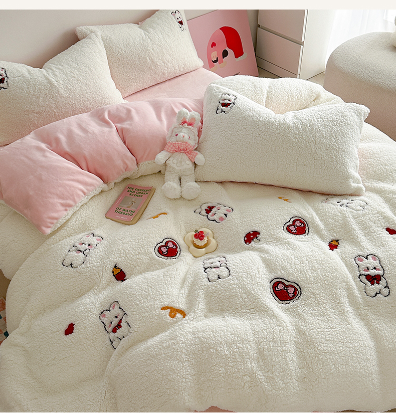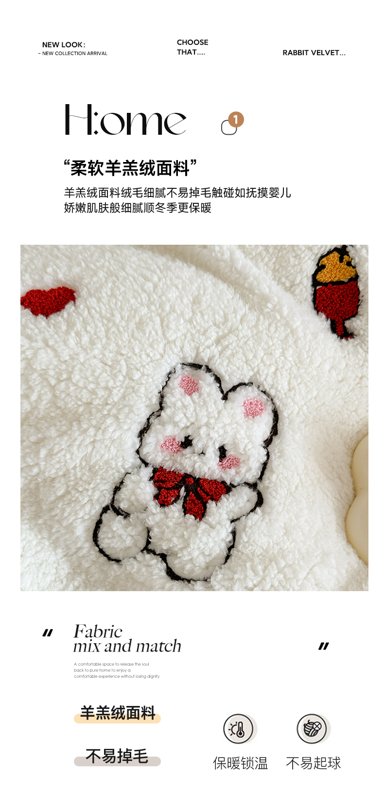 当前位置: 91家纺网 > 商品网购 > 床品套件 > 四件套 > 牛奶绒四件套 > 蜜柚 2024新款高克重羊羔绒牛奶绒毛巾绣四件套 欢乐兔小姐