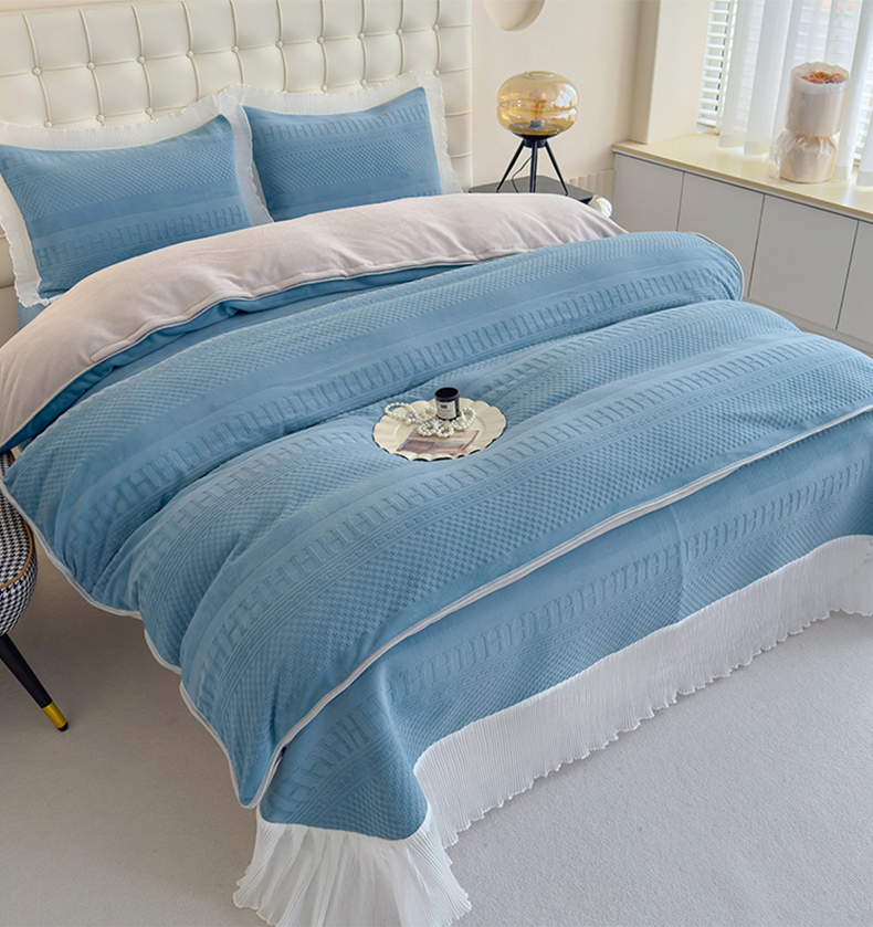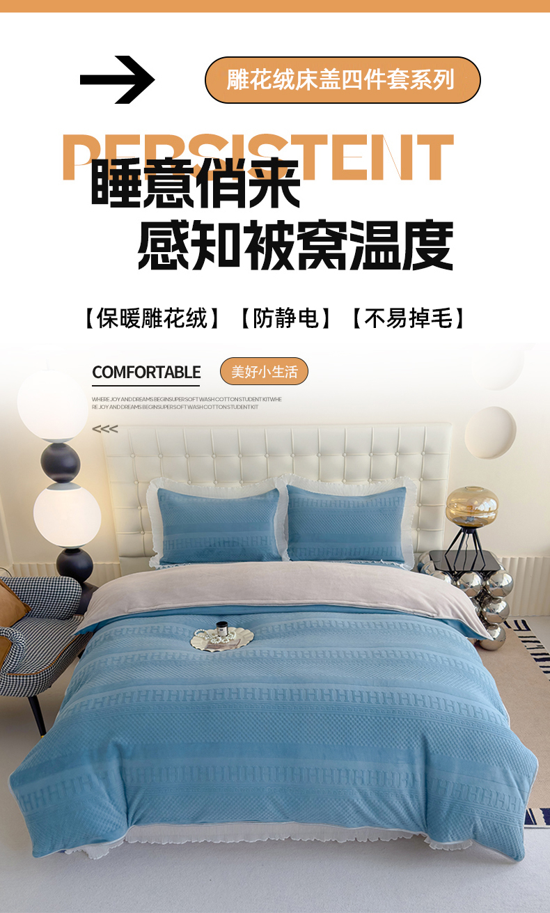 商品名称:冬然家纺 2024新款雕花绒床盖四件套 H-深海蓝