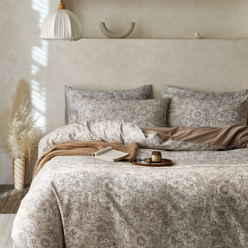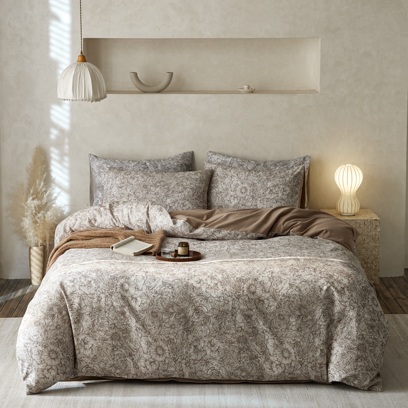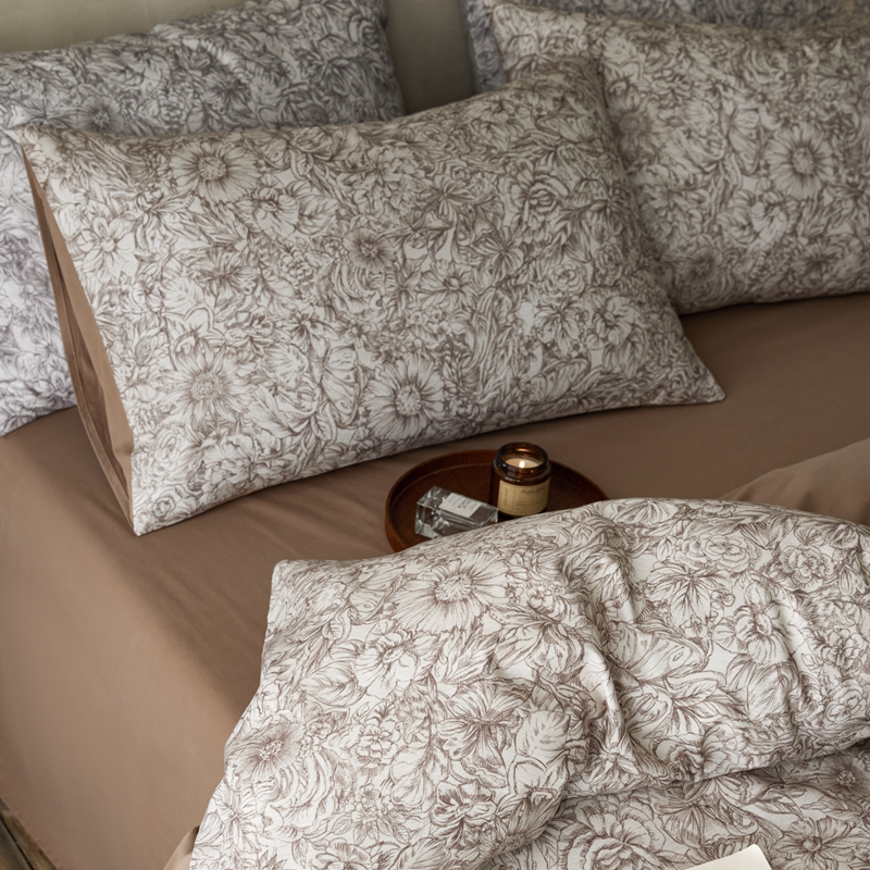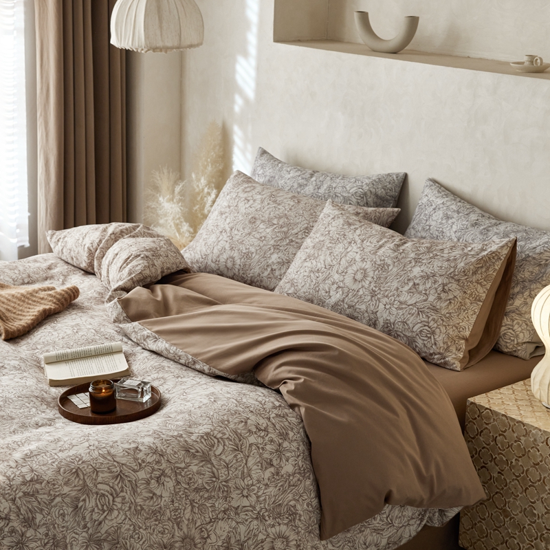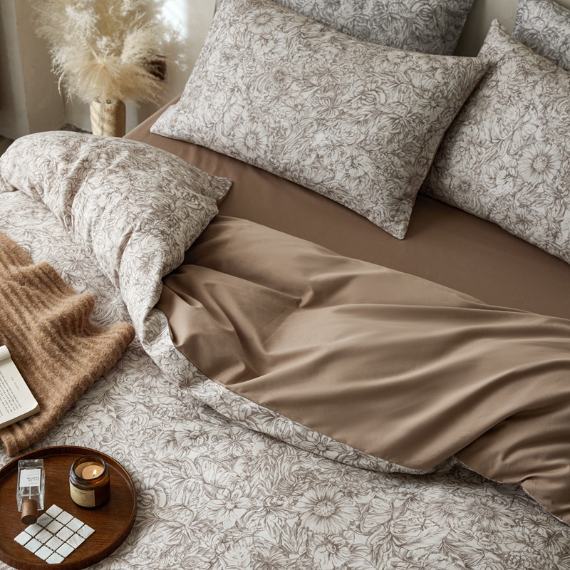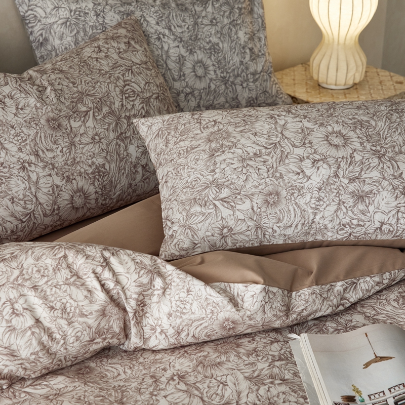 商品名称:初拾 2024新款全棉加厚磨毛数码印花四件套 花束漫-咖