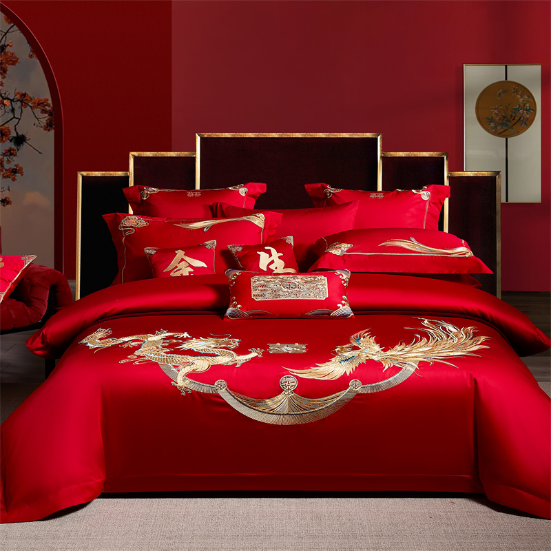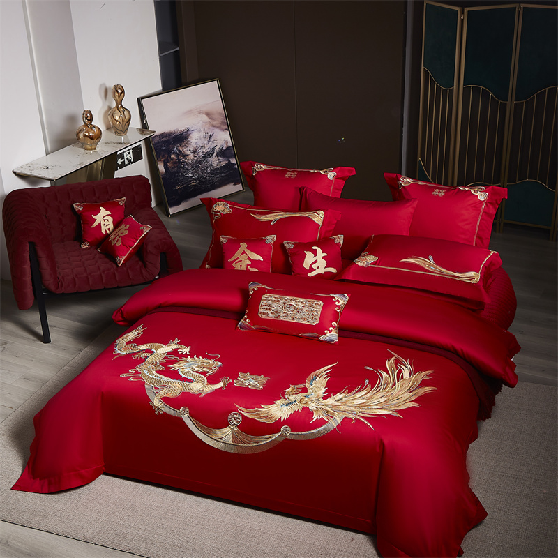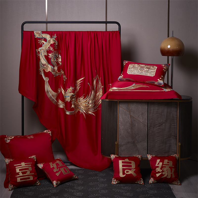 当前位置: 91家纺网 > 商品网购 > 床品套件 > 四件套 > 婚庆四件套 > 高大尚 2025新款长绒棉囍嫁系列四件套 龙凤婵娟