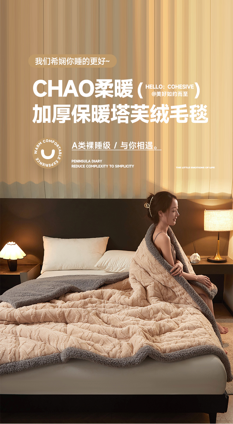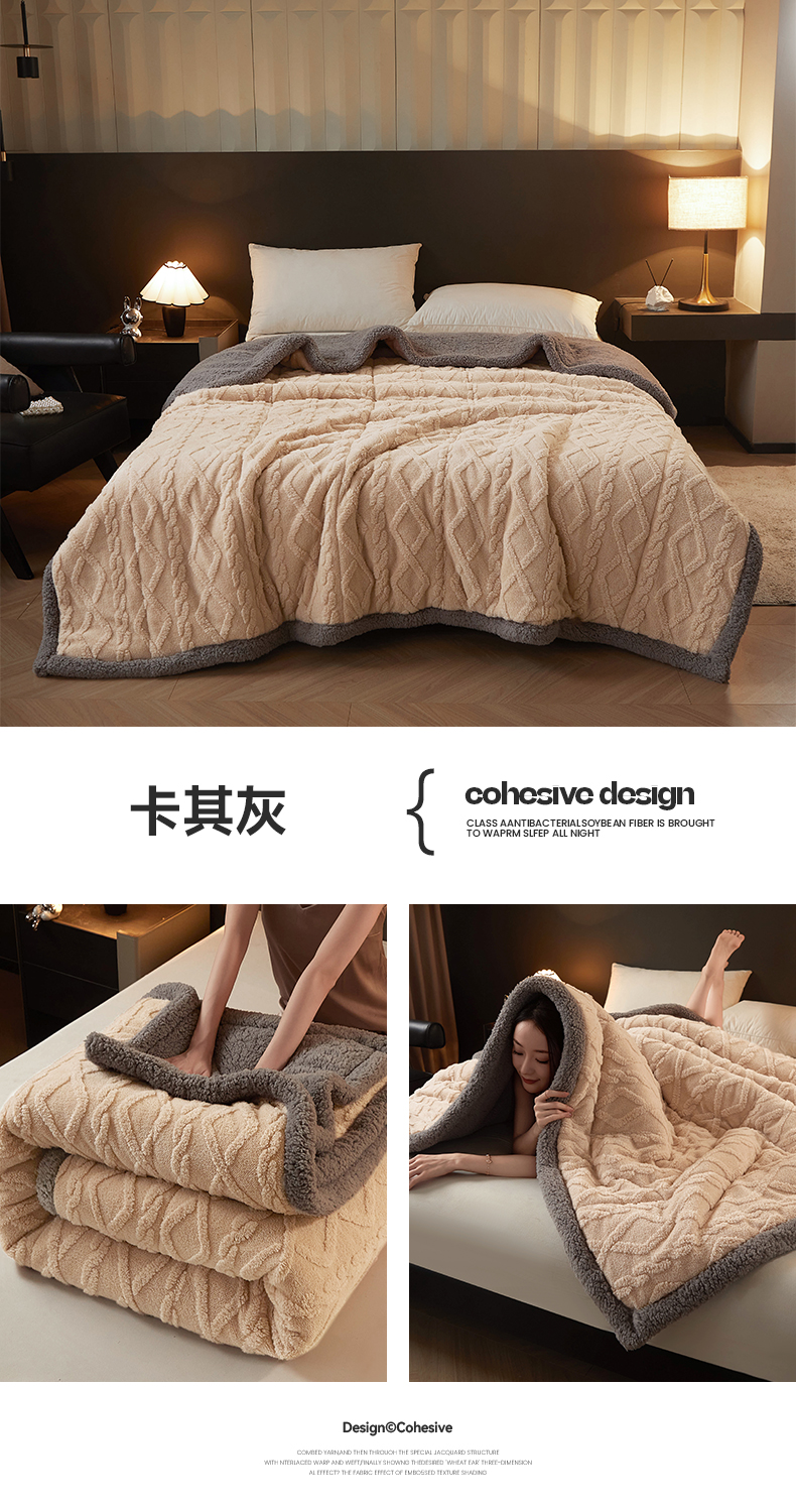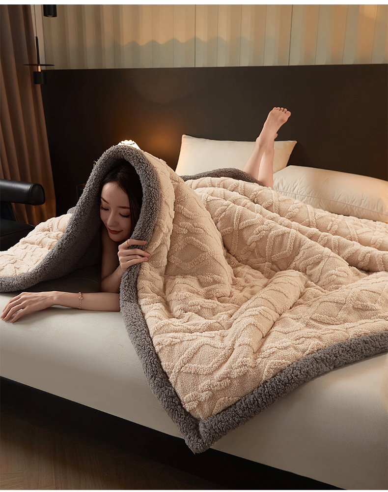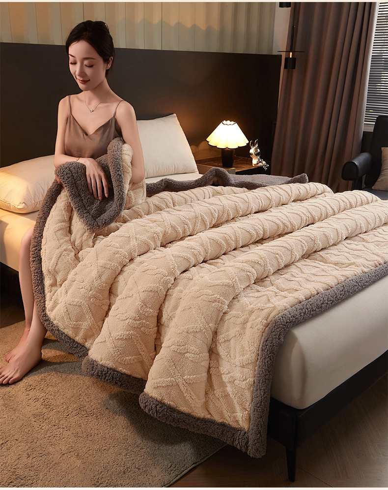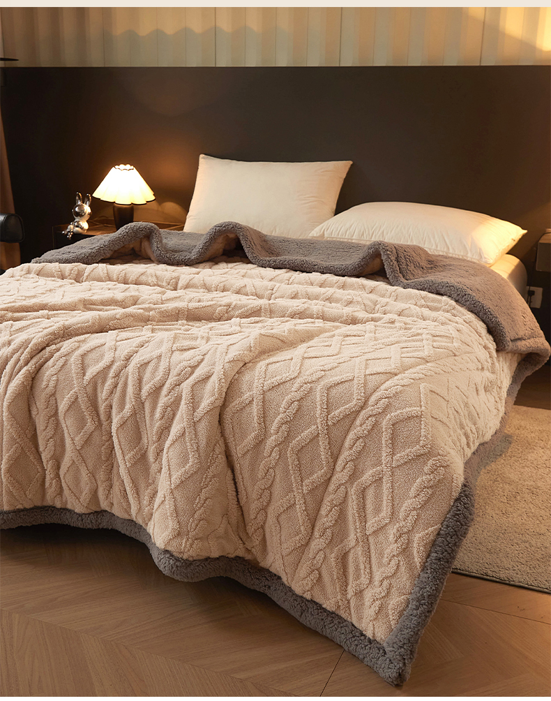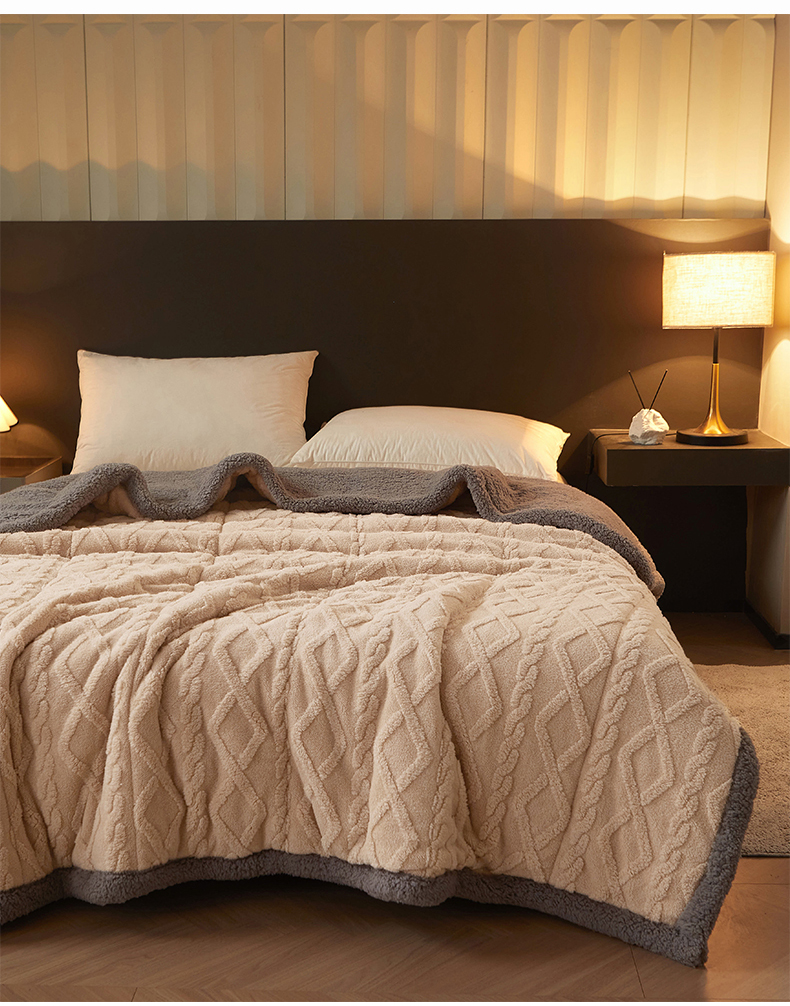澳梵家居 2024新款三层夹棉加厚塔肤绒毛毯-场景二 卡其灰