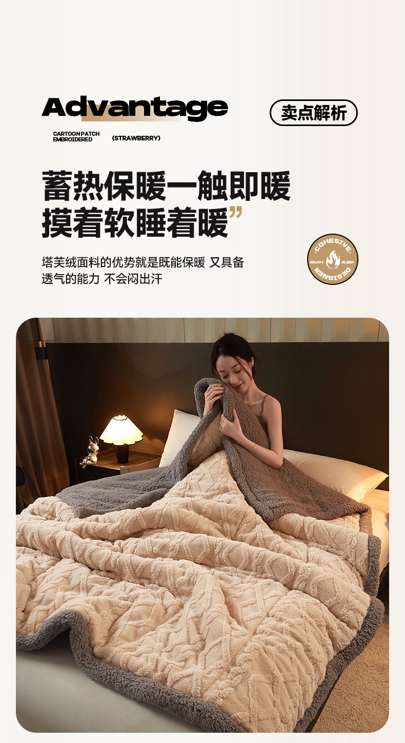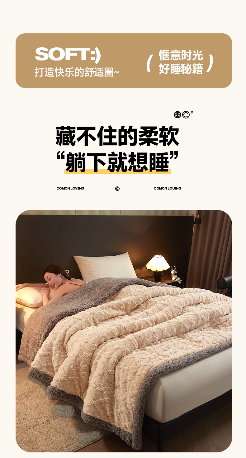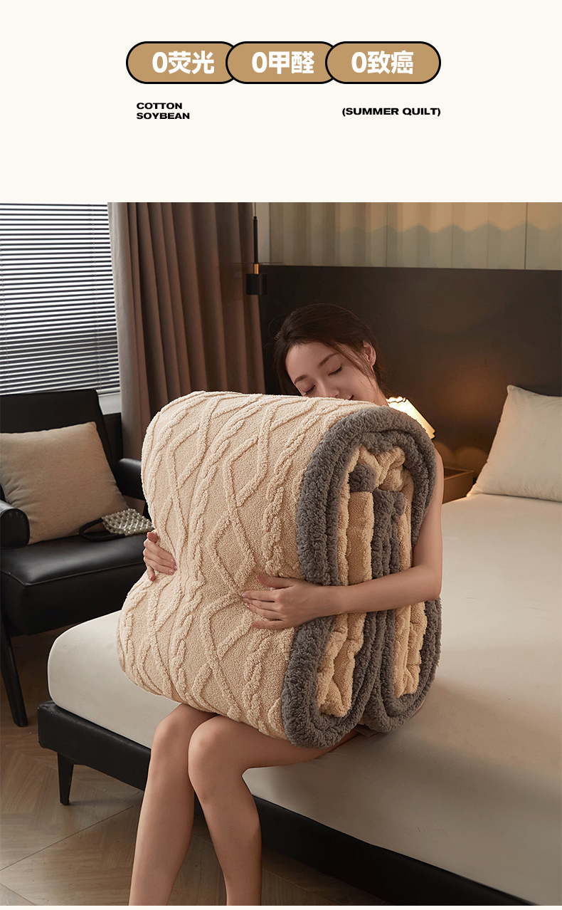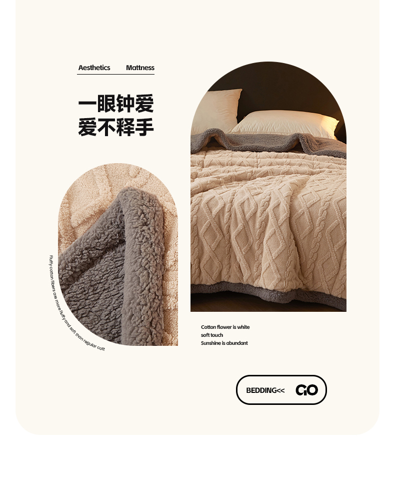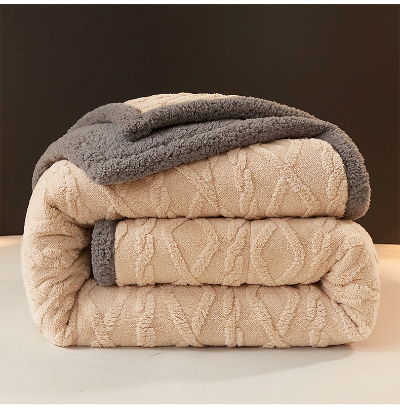 澳梵家居 2024新款三层夹棉加厚塔肤绒毛毯-场景二 卡其灰