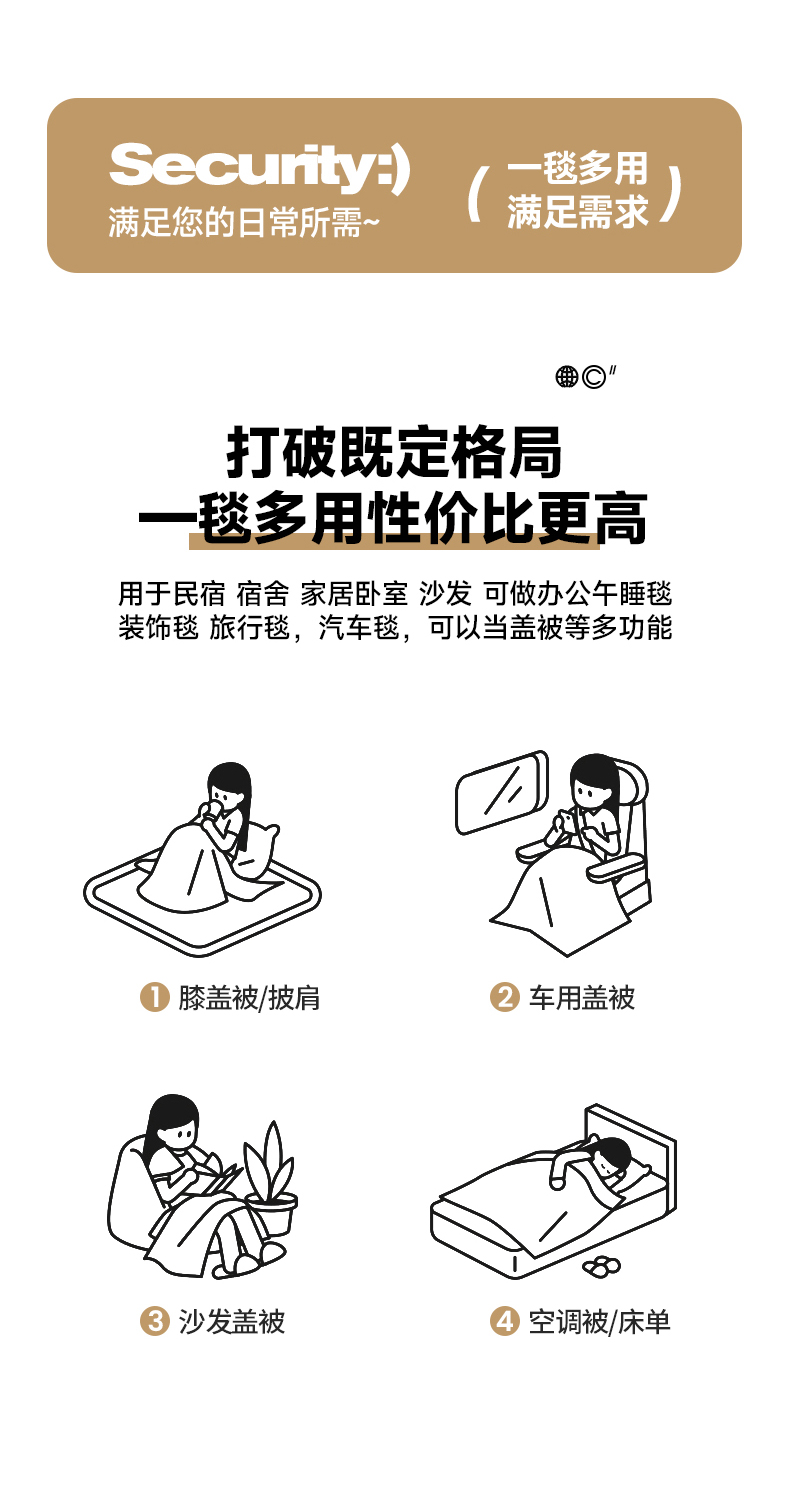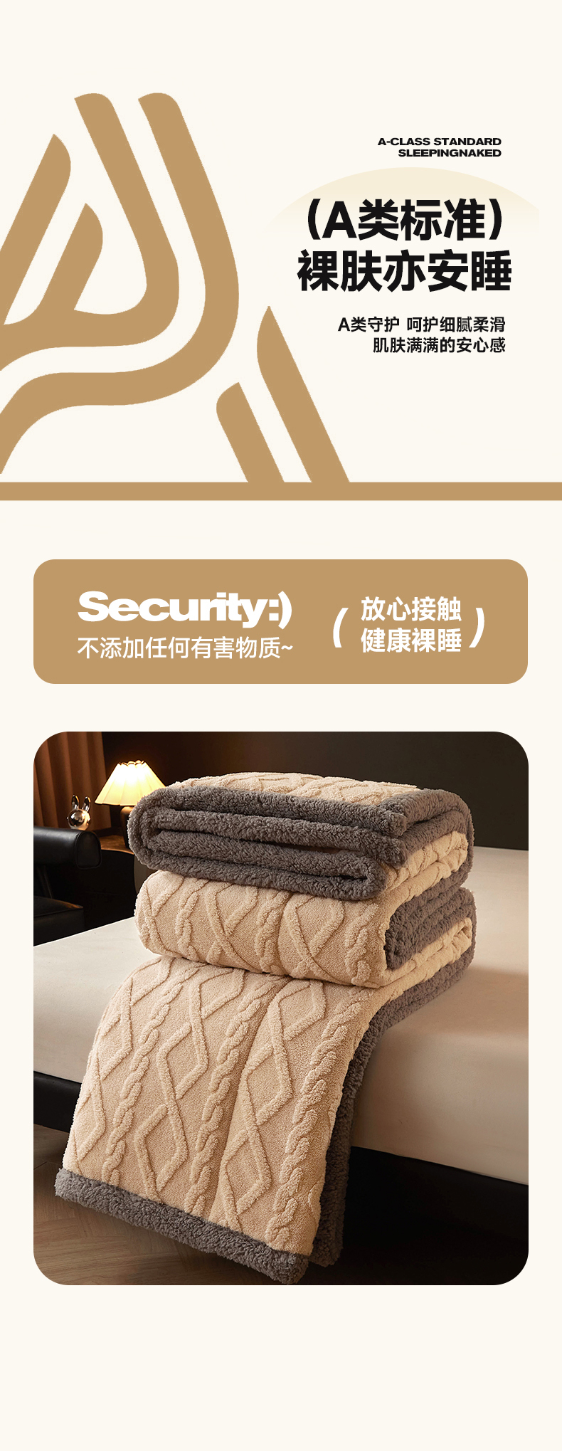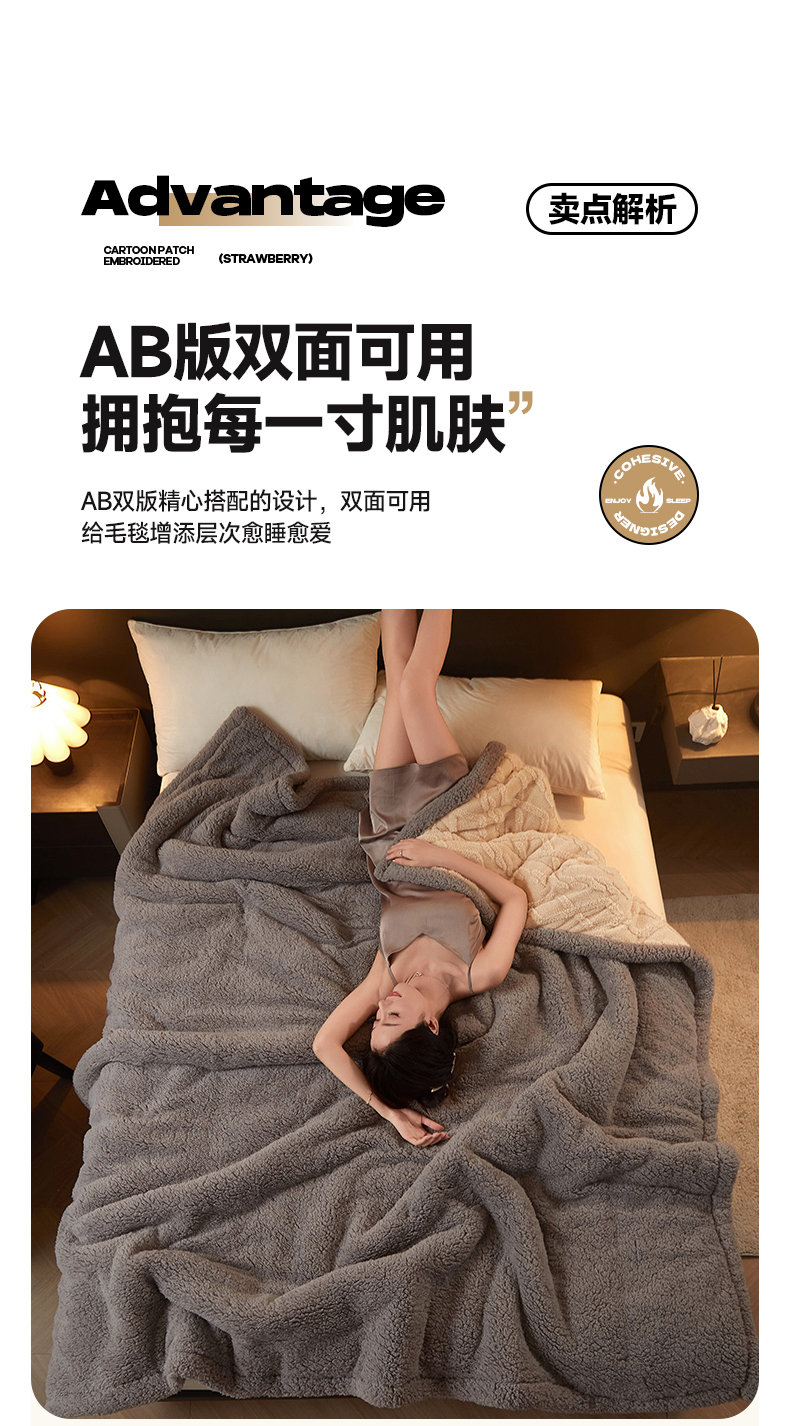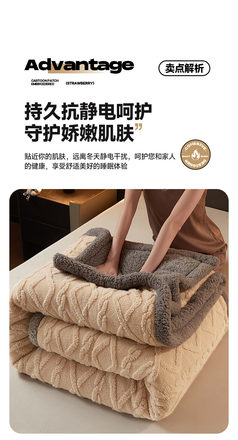 澳梵家居 2024新款三层夹棉加厚塔肤绒毛毯-场景二 卡其灰