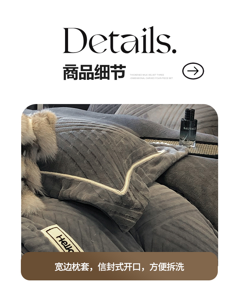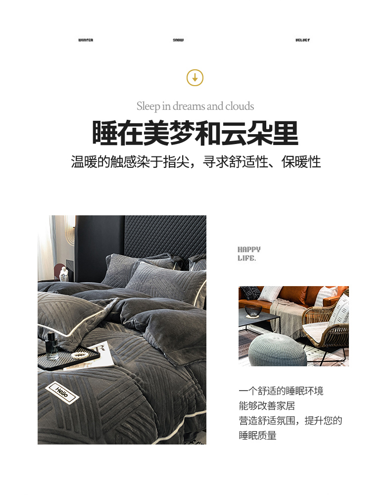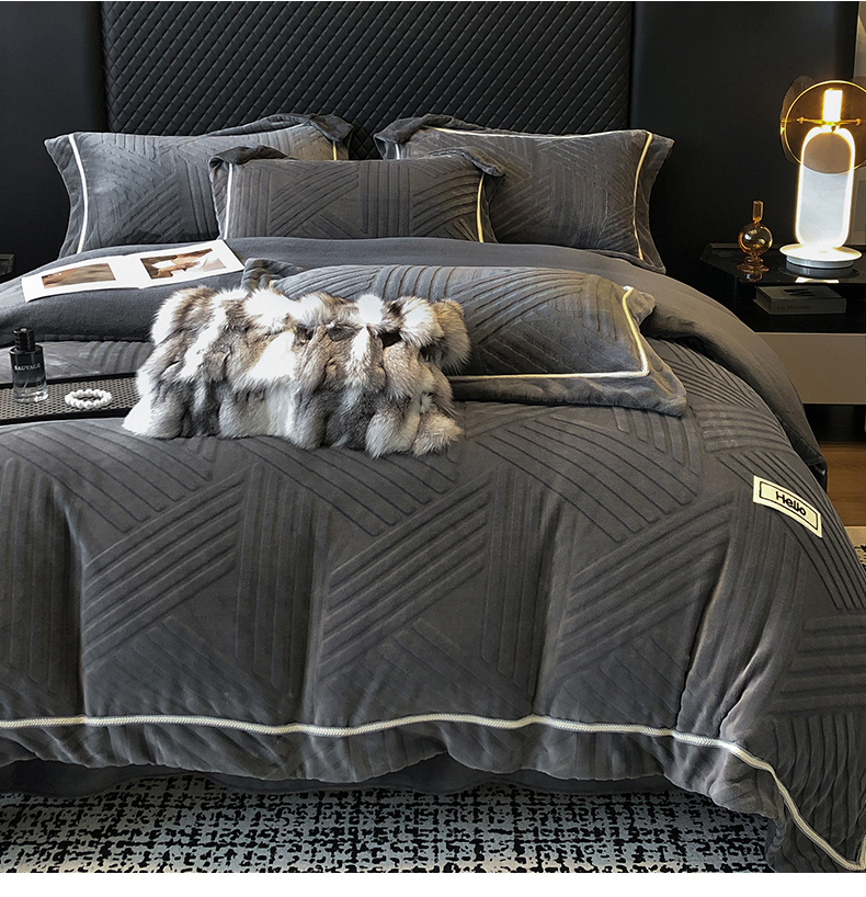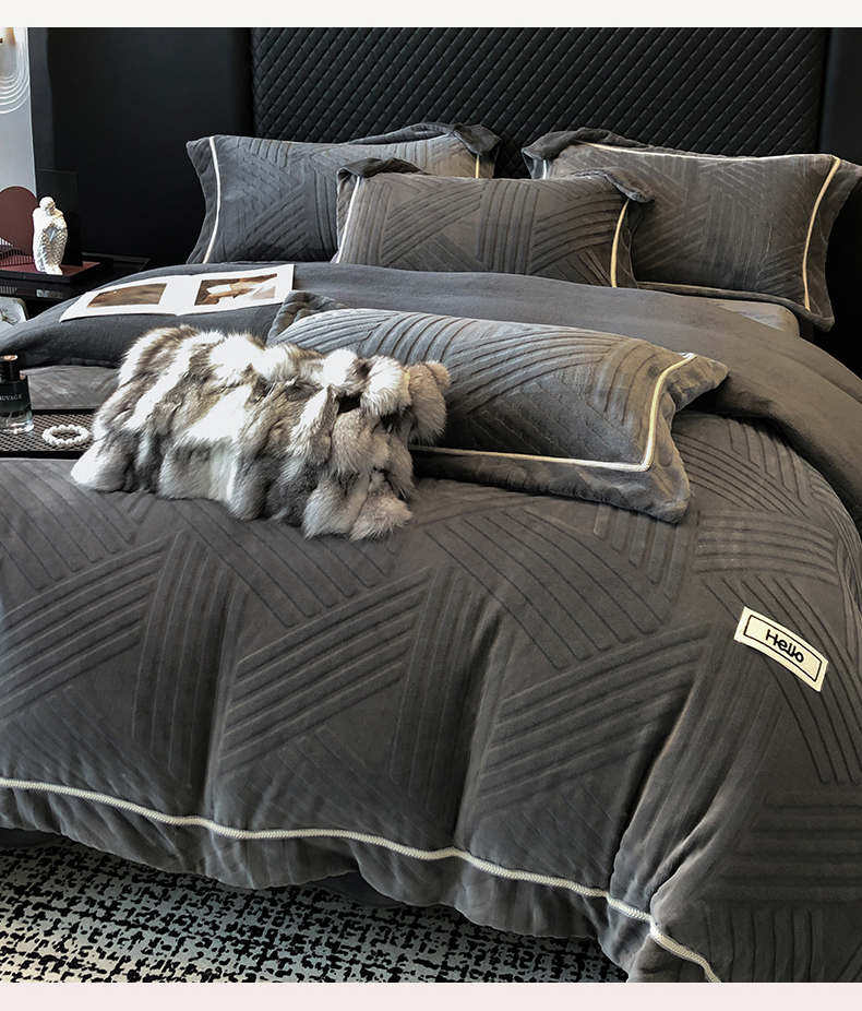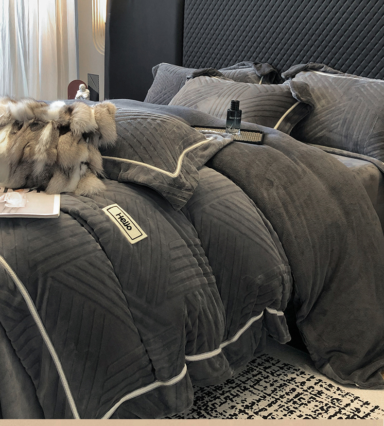 商品名称:首尔家纺 2024新款雕花牛奶绒律动系列四件套 律动-浅灰