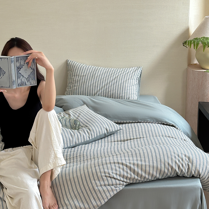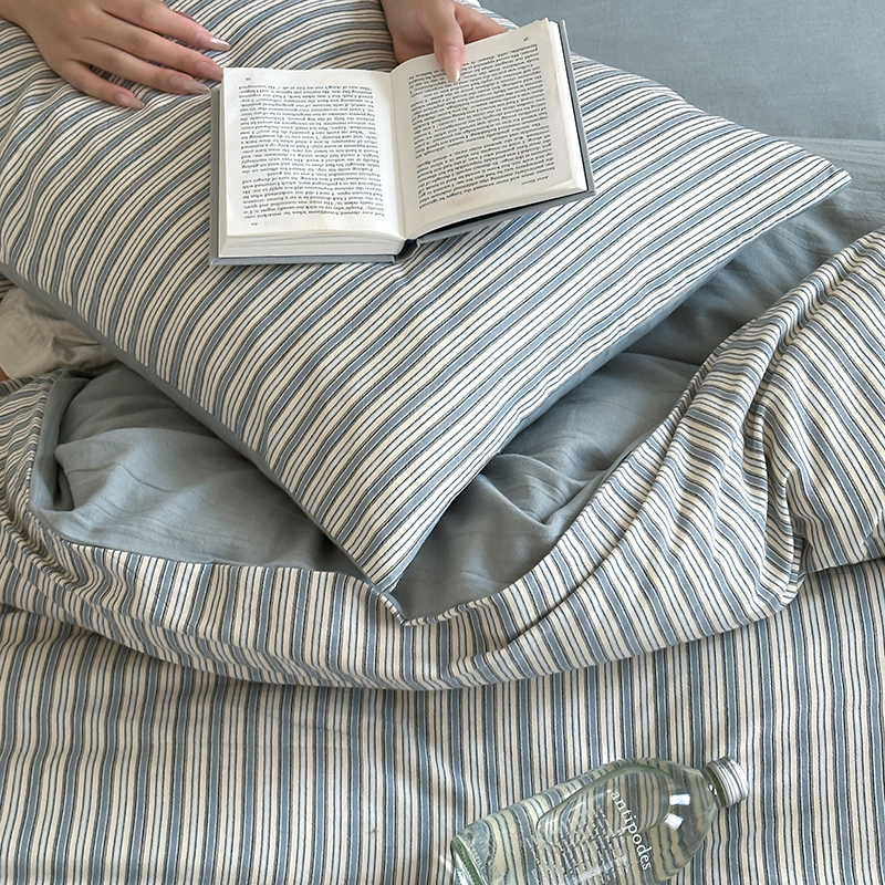 当前位置: 91家纺网 > 商品网购 > 床品套件 > 四件套 > 全棉普通四件套 > 2024新款全棉水洗提花工艺四件套-时光巴黎 巴黎蓝条