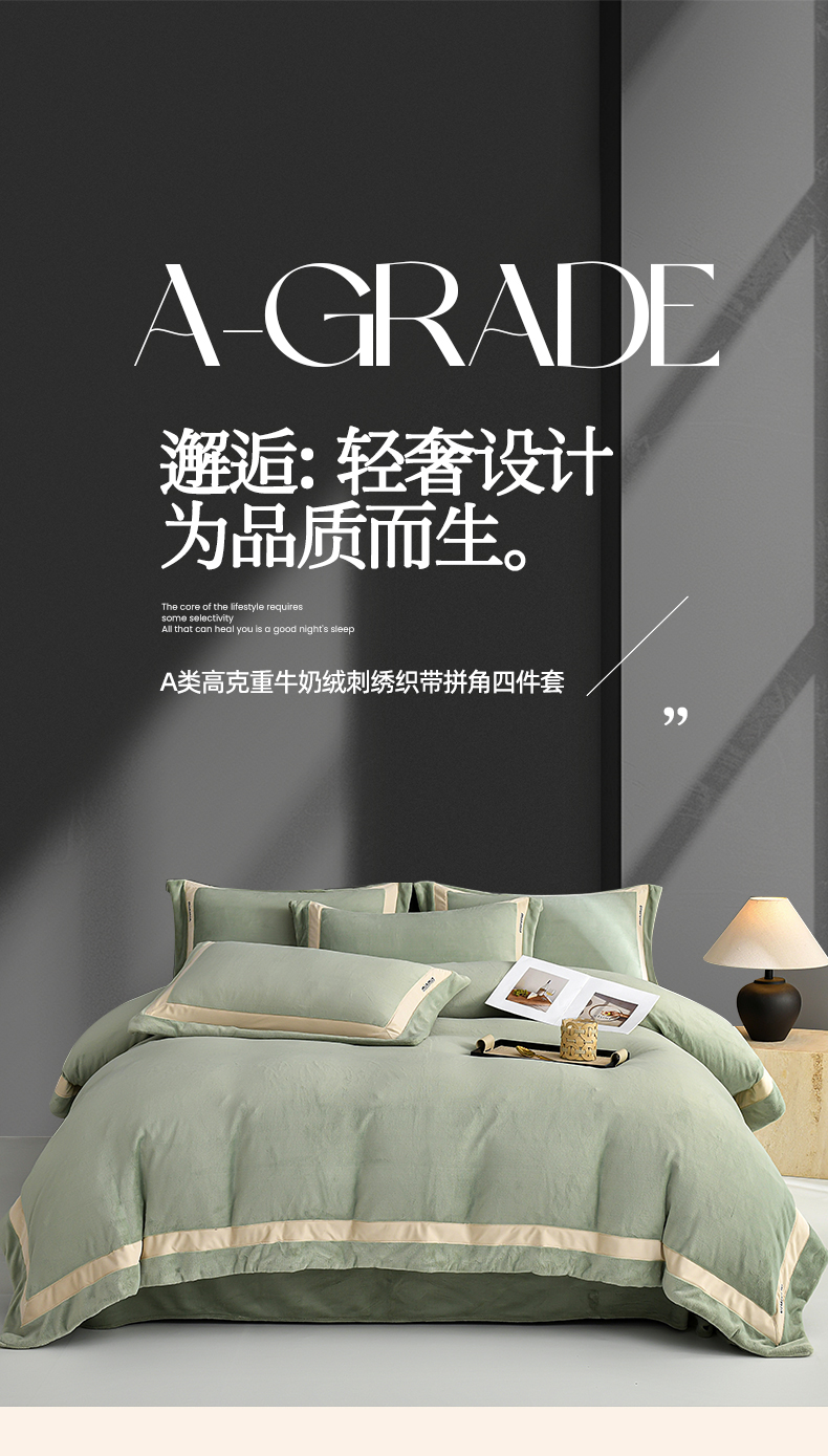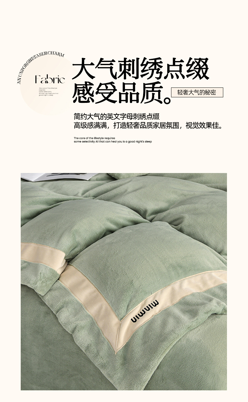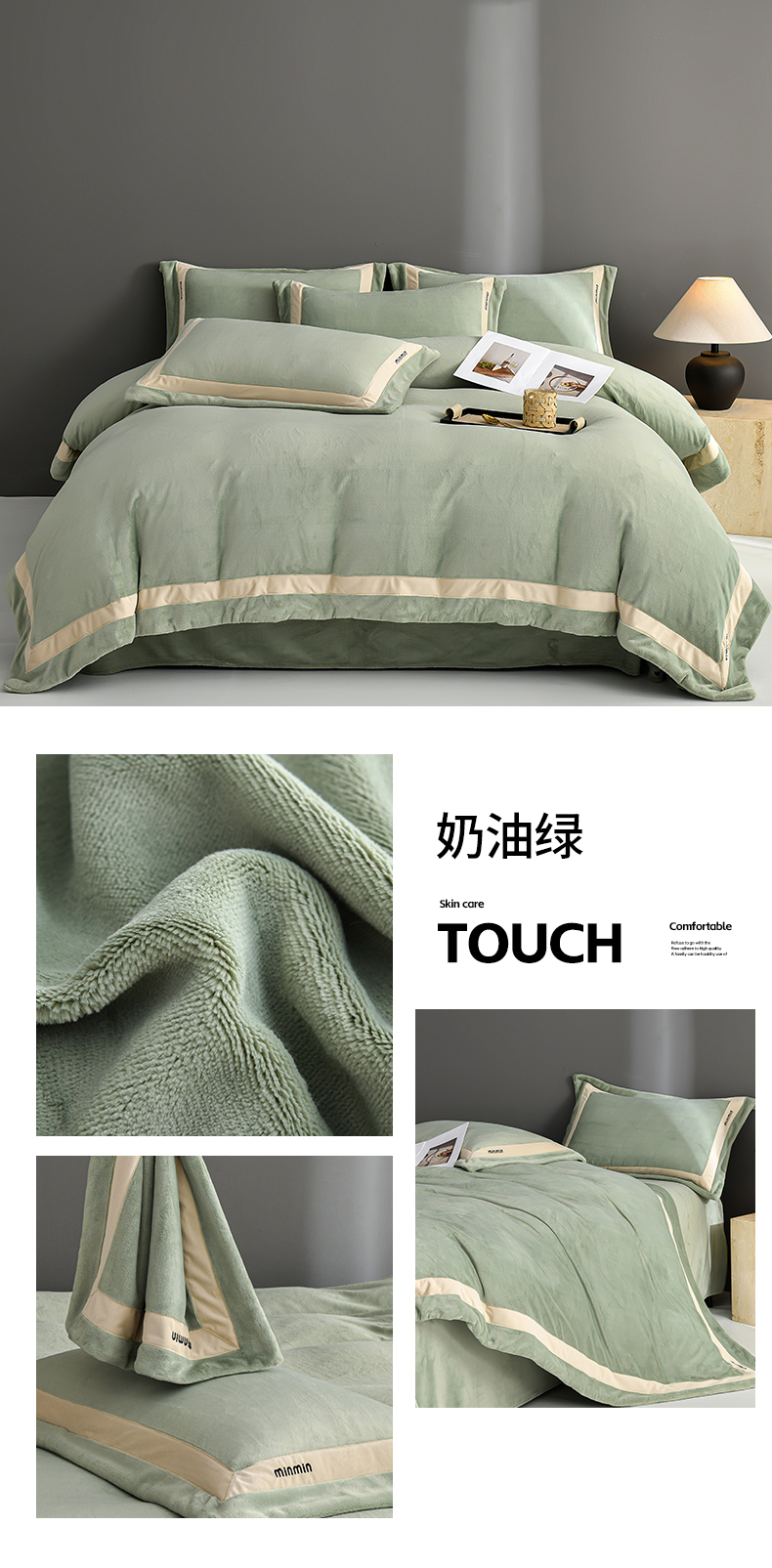 当前位置: 91家纺网 > 商品网购 > 床品套件 > 四件套 > 牛奶绒四件套 > 网客家纺 2024新款minmin牛奶绒刺绣四件套 minmin-奶油绿