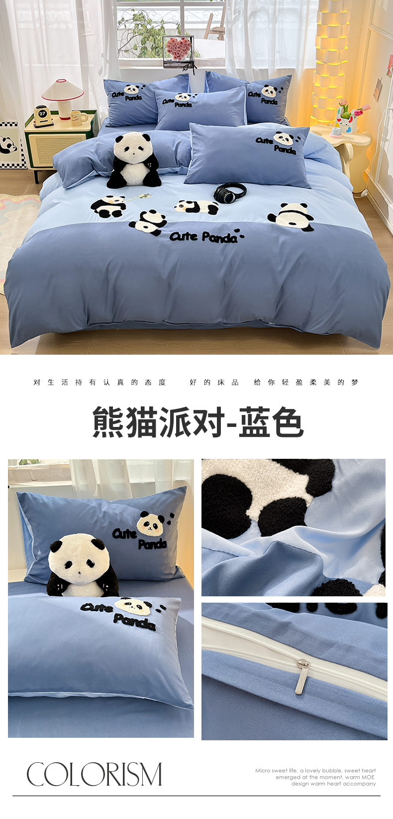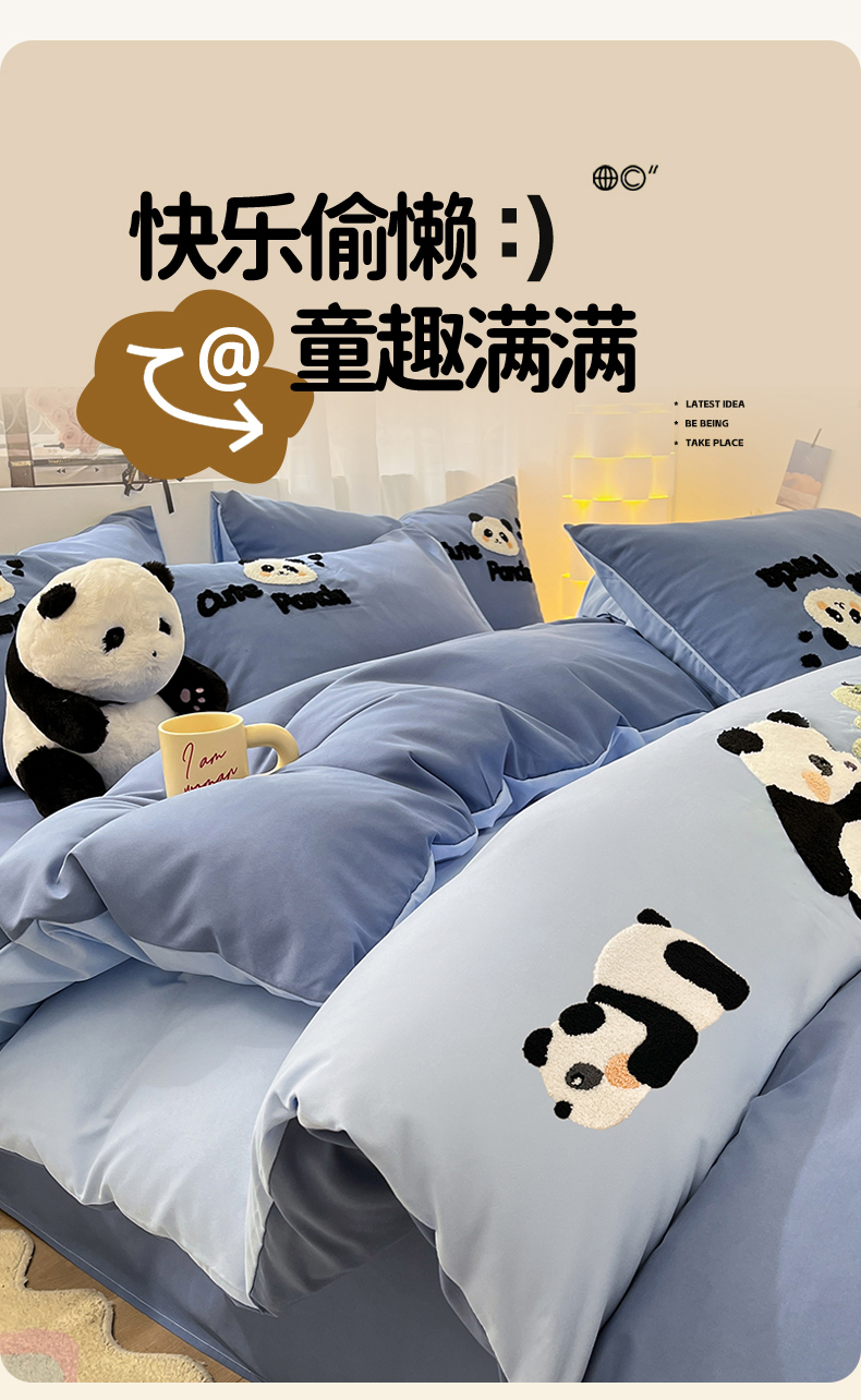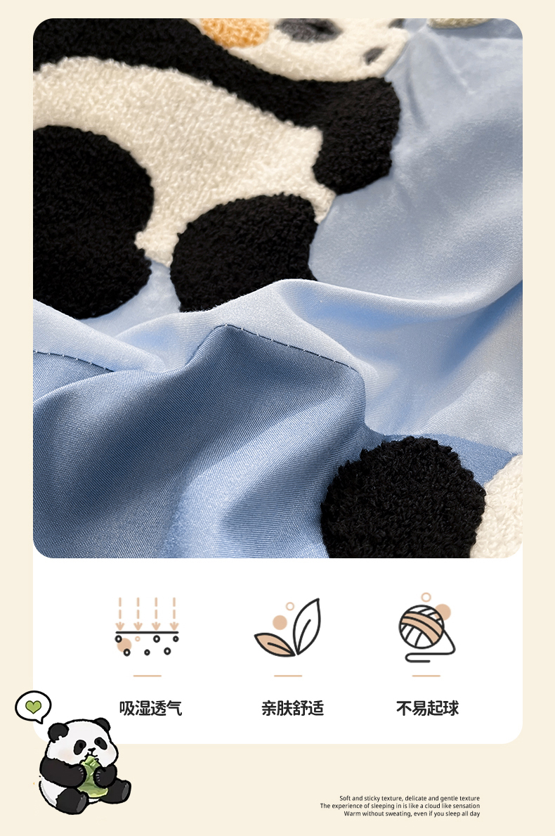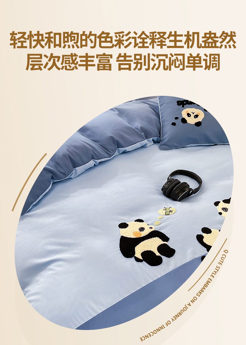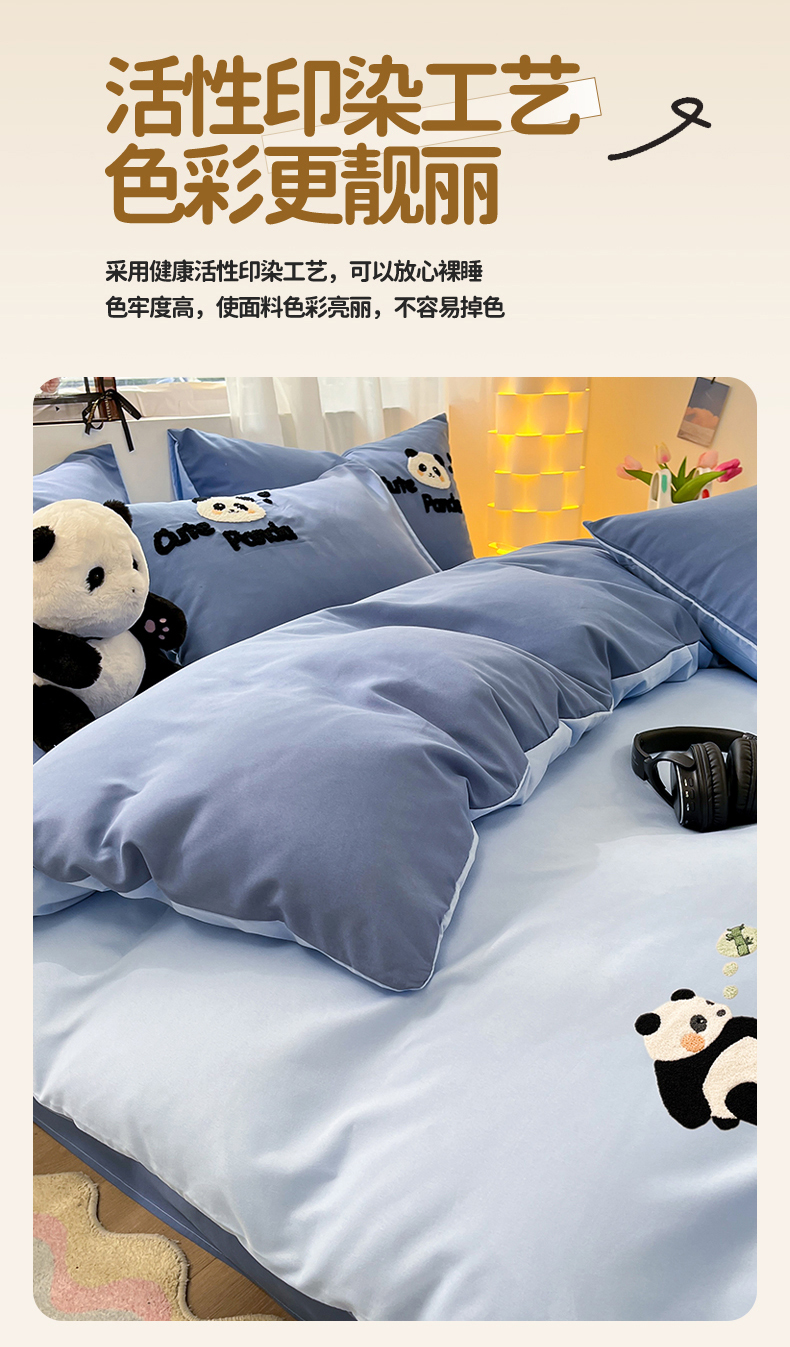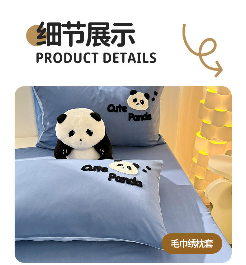 当前位置: 91家纺网 > 商品网购 > 床品套件 > 四件套 > 水洗棉四件套 > 一左一右 2024新款亲肤磨毛水洗棉拼接立体毛巾绣花卡通四件套儿童学生三件套床笠(提供买家秀) 熊猫派对-蓝色