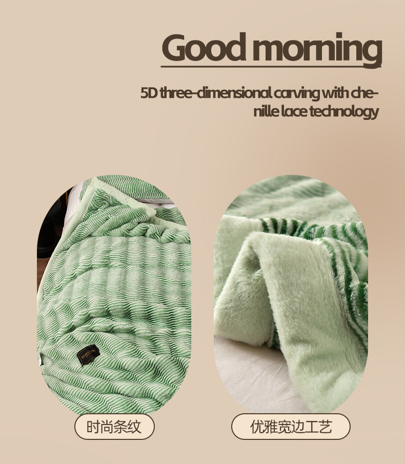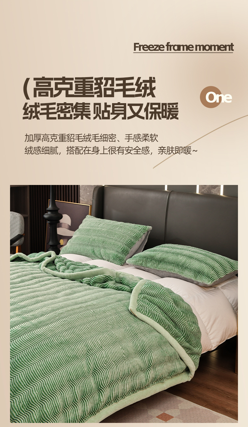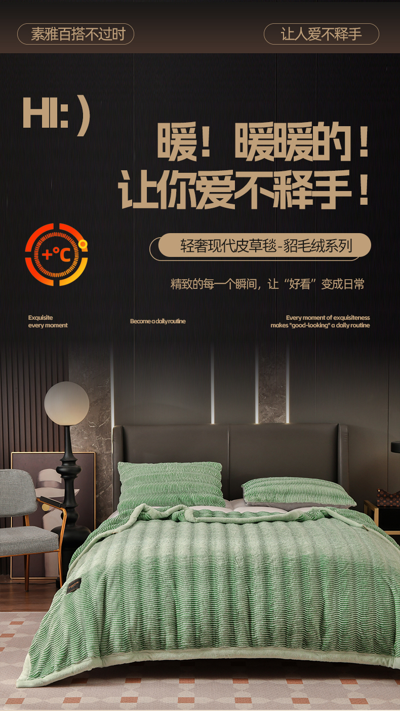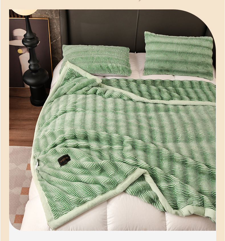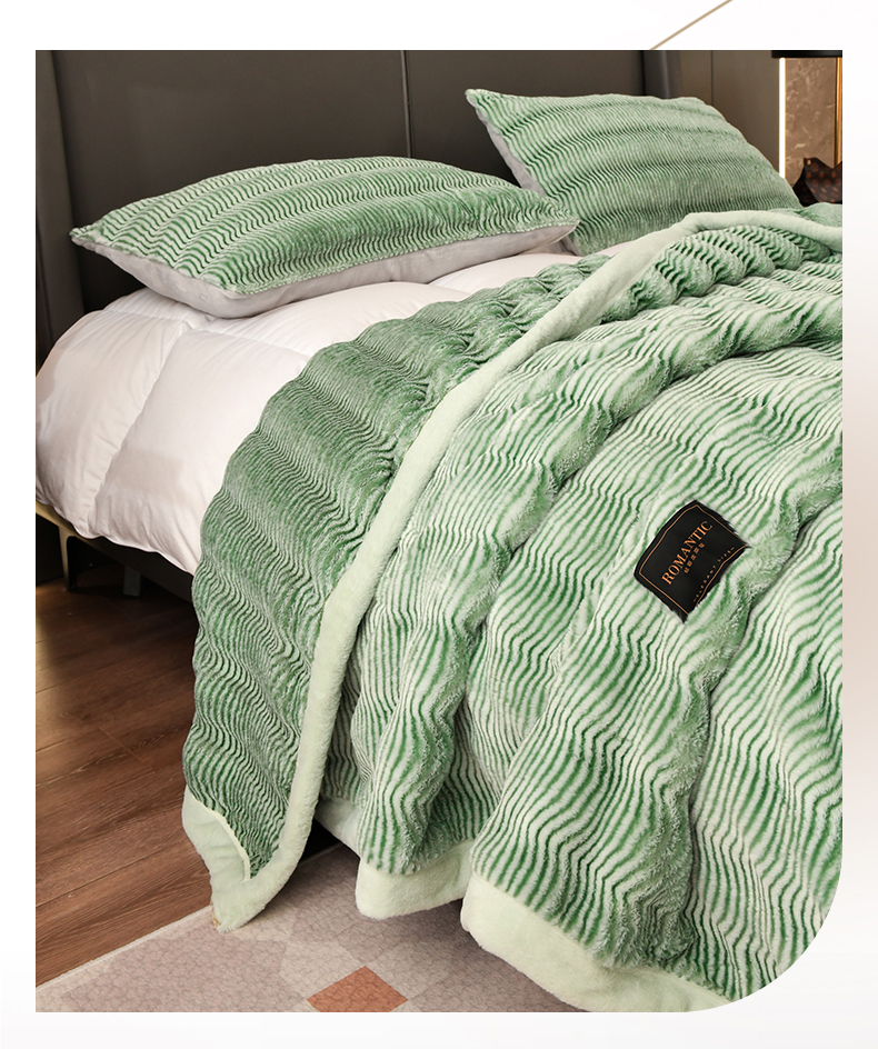 宜派家纺 2024新款轻奢现代貂皮草毛毯 轻奢貂毛毯-绿