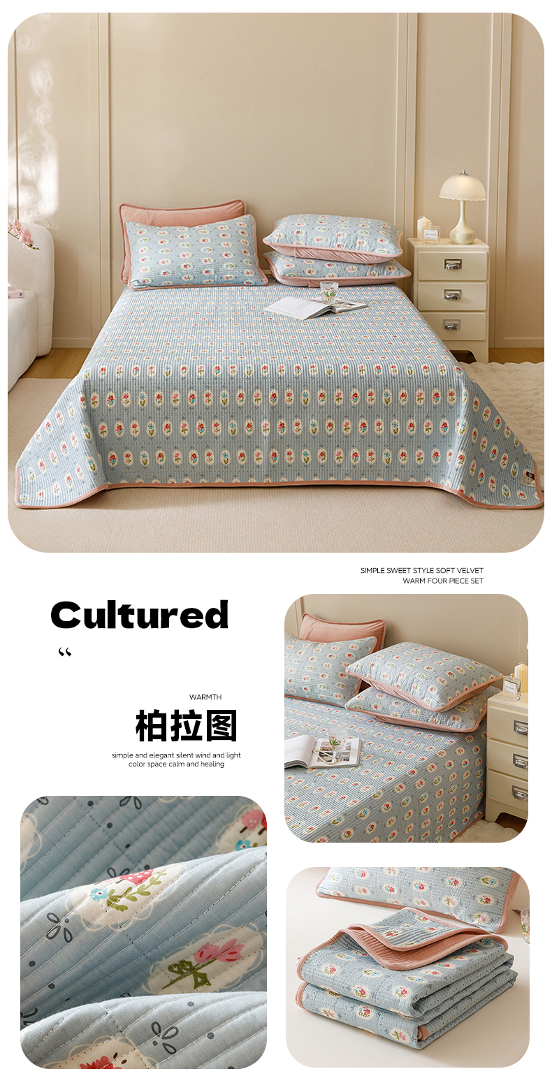 富瑞阁 2024新款婴儿绒宝宝绒牛奶绒床盖三件套单品学生宿舍床盖 柏拉图