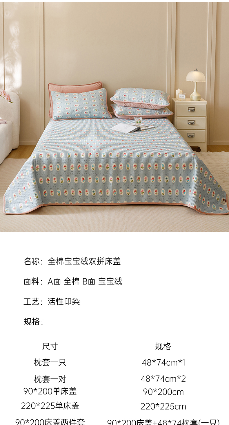 商品名称:富瑞阁 2024新款婴儿绒宝宝绒牛奶绒床盖三件套单品学生宿舍床盖 柏拉图