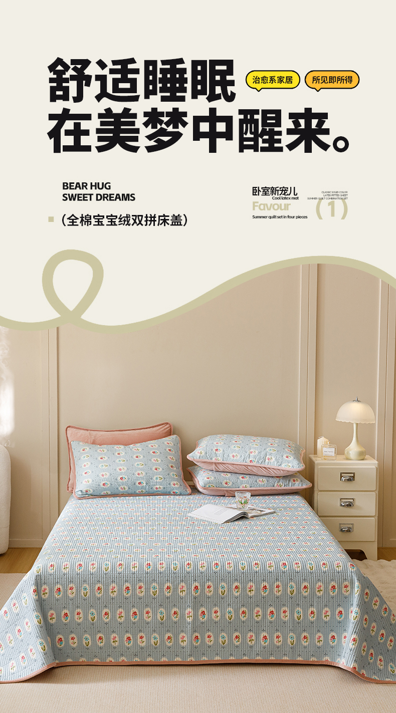 (总)富瑞阁 2025新款ins风韩版AB全棉纯棉多功能床盖夏被盖毯单品件套三件套,繁花,海洋之心,花开满满,锦觅,卡芙卡,浪漫生活,丽芙,莫言,南笙-兰,秋日暖阳,思忆绵绵,香香兔-兰