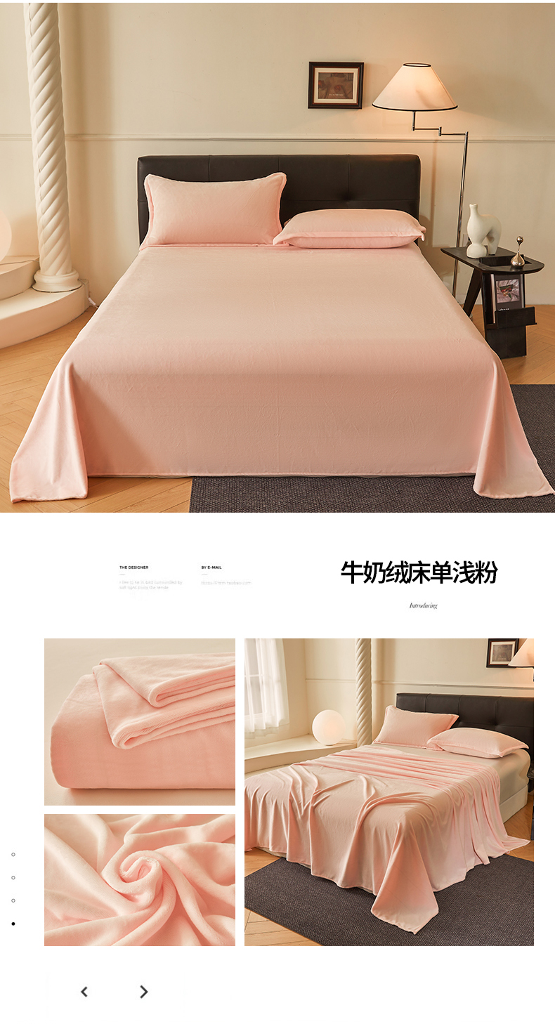 雅萱家纺 2024新款纯色牛奶绒床单 牛奶绒床单浅粉
