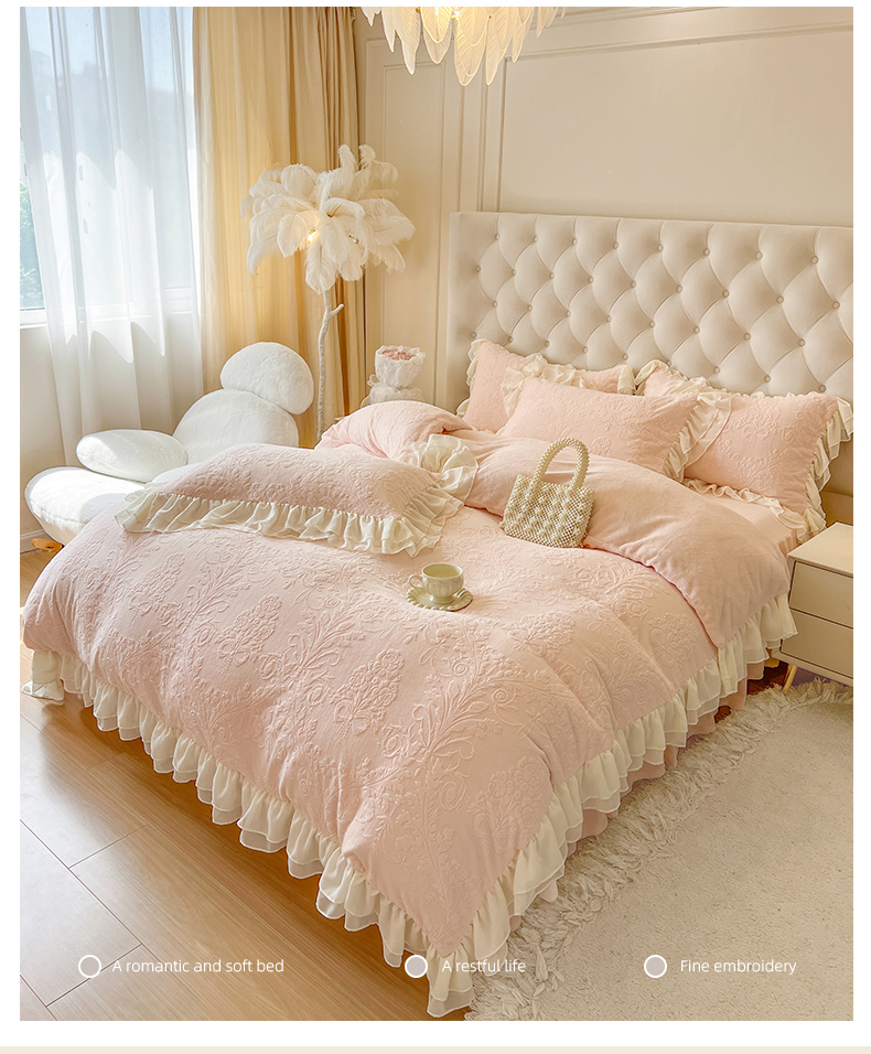 (总)亲亲公主 2025新款加厚高克重牛奶绒法式公主风四件套-热恋玫瑰,粉玉,奶白