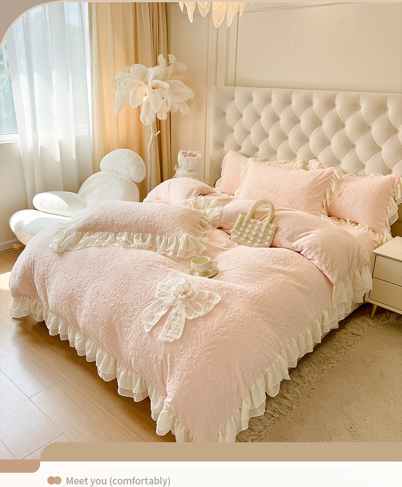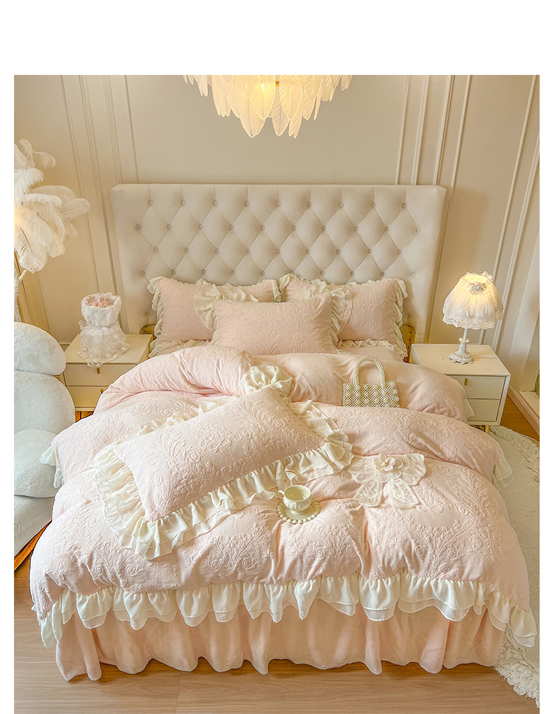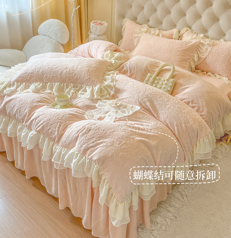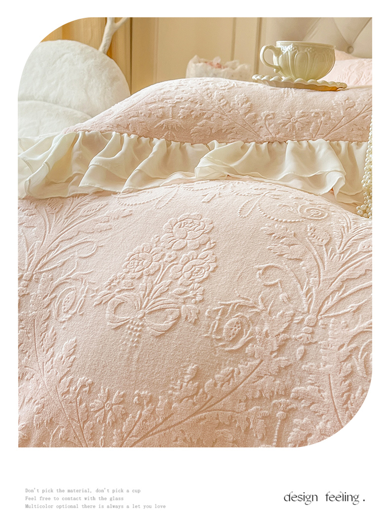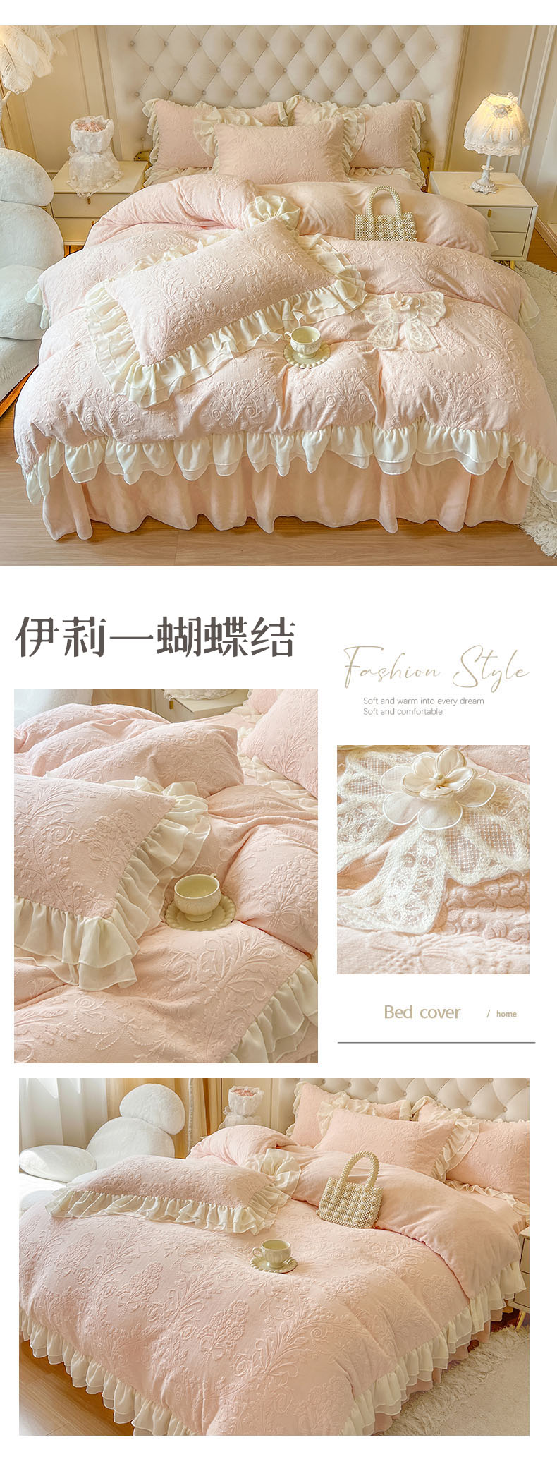 (总)亲亲公主 2025新款牛奶绒雕花保暖四件套-伊莉(配送蝴蝶结)