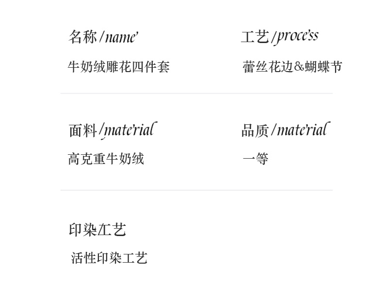 商品名称:(总)亲亲公主 2025新款牛奶绒雕花保暖四件套-伊莉(配送蝴蝶结)