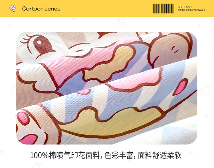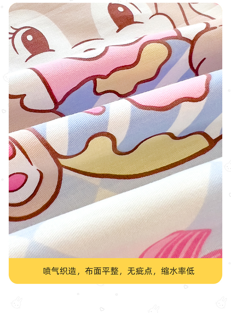 (总)拾物记 2023新款喷气全棉卡通小清新系列单被套,欢乐萌熊,奶油兔-红