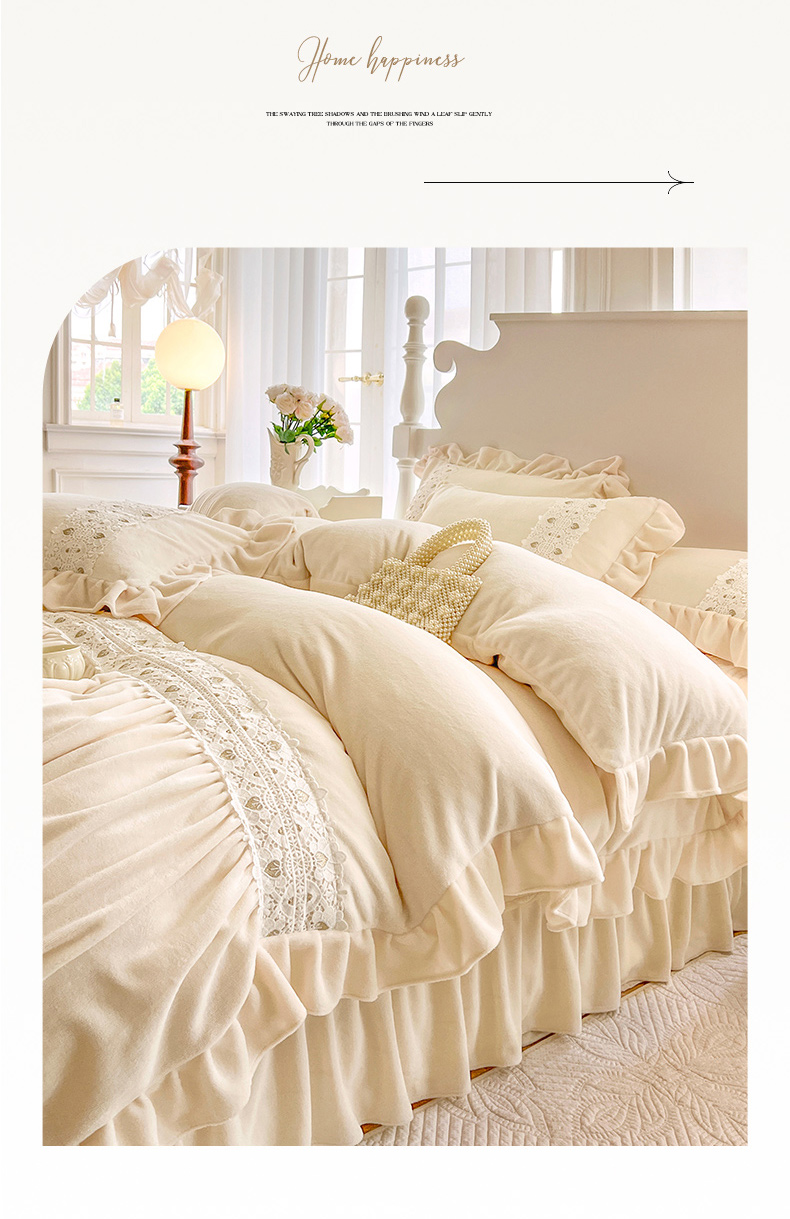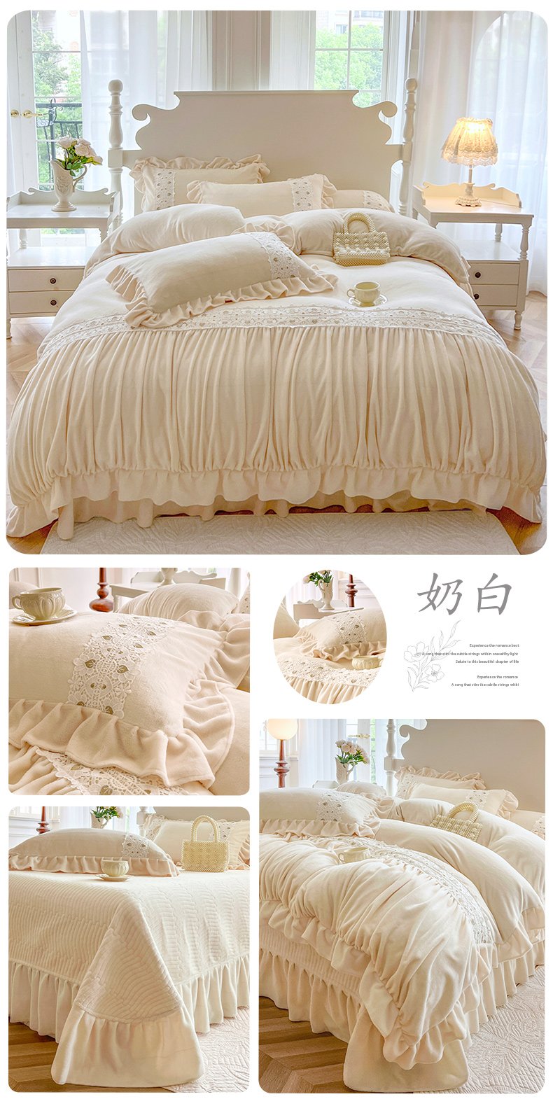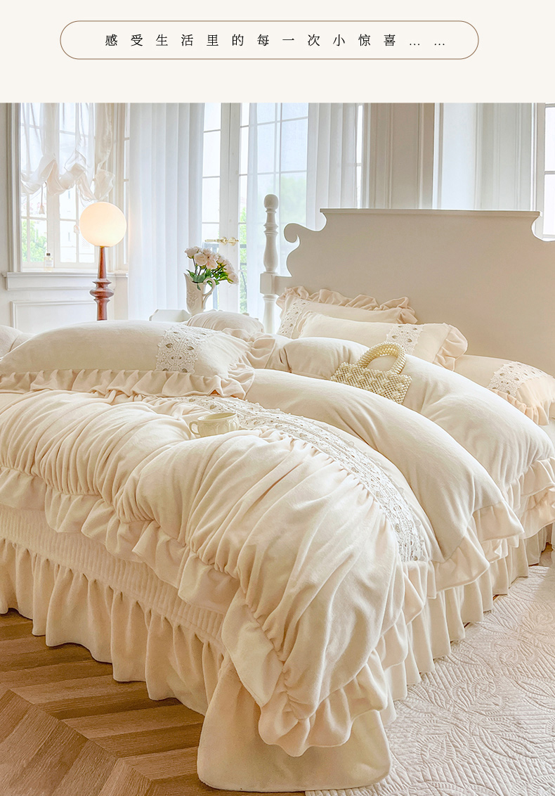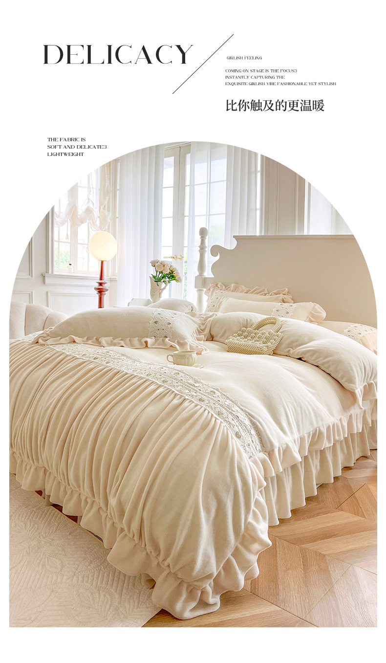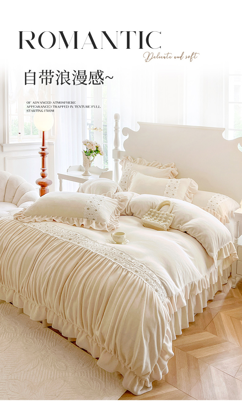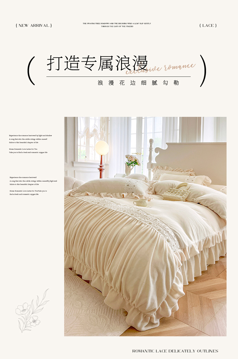 (总) 乐朵家居 2025新款 维娜 牛奶绒 床盖款四件套,粉玉,奶白