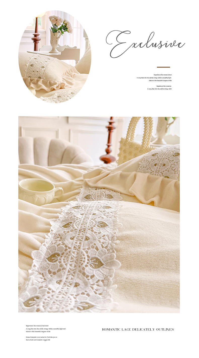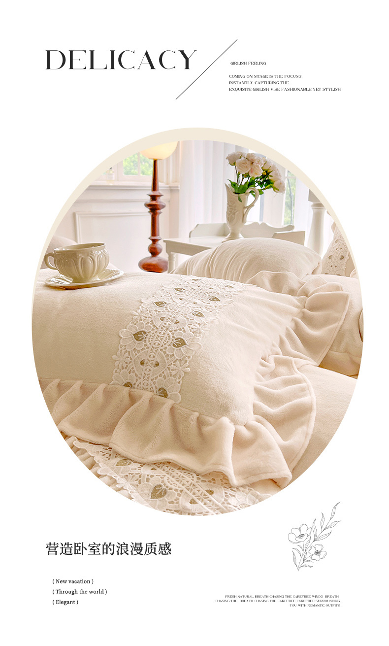 (总)乐朵家居 2025新款 南法庄园 牛奶绒 夹棉床盖四件套,粉玉,奶白