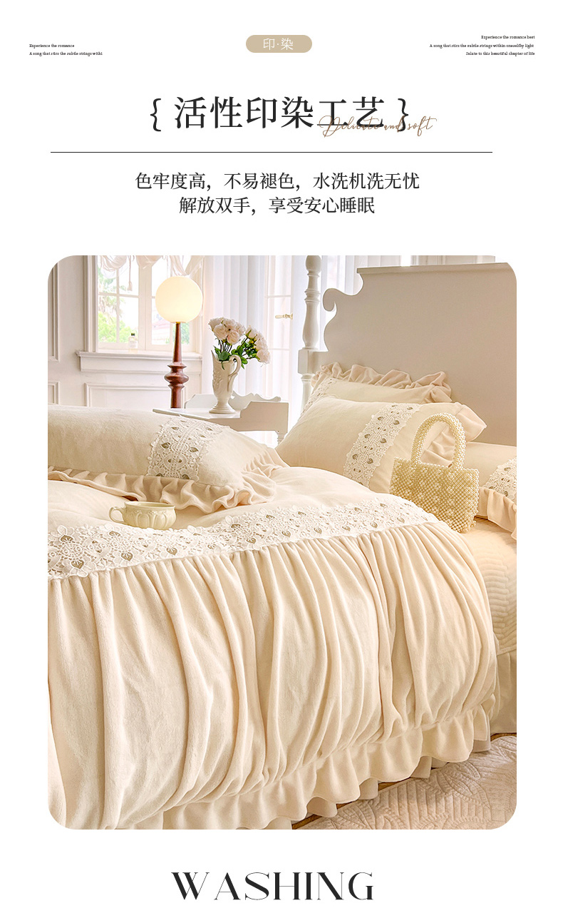 (总)乐朵家居 2025新款 25-1 芯语 蕾丝床裙,豆沙,灰,卡其,绿,米,紫