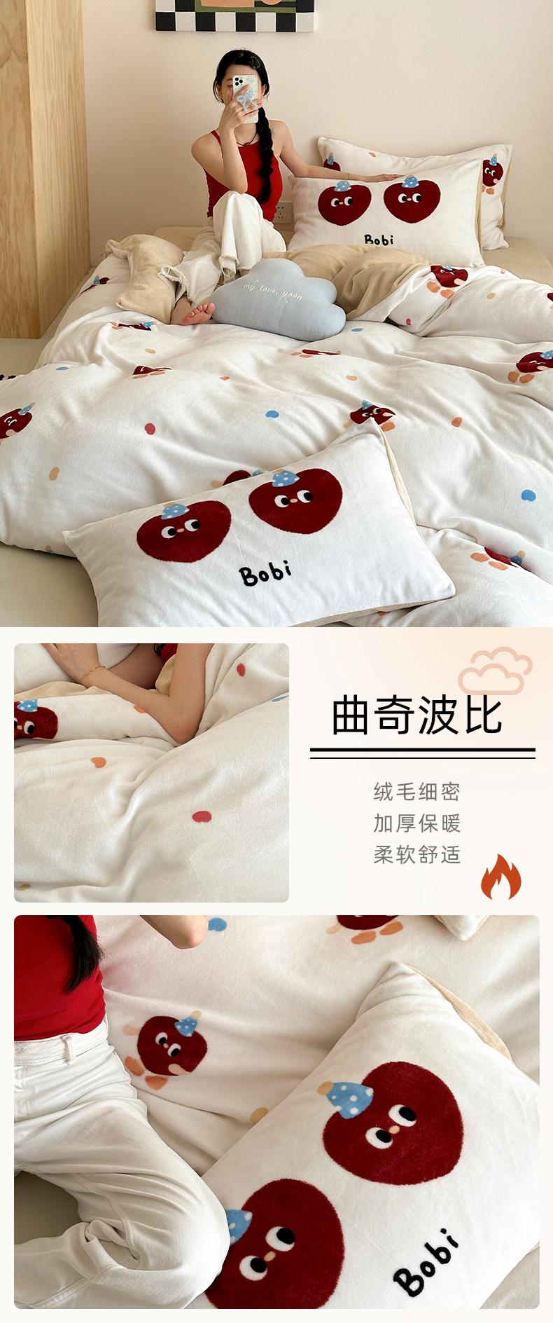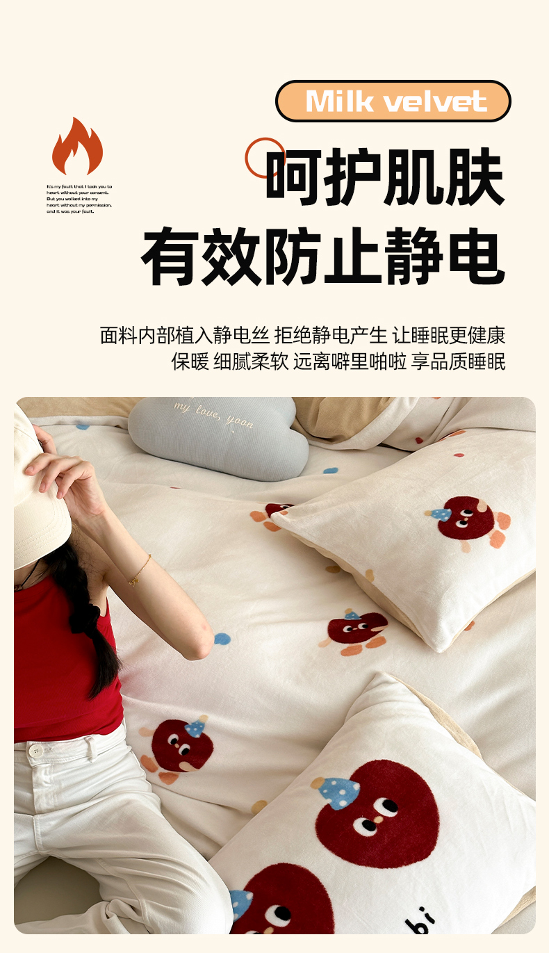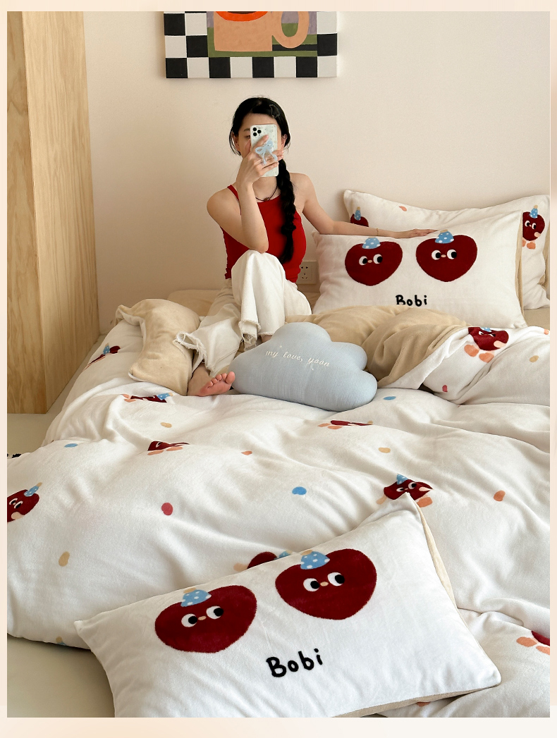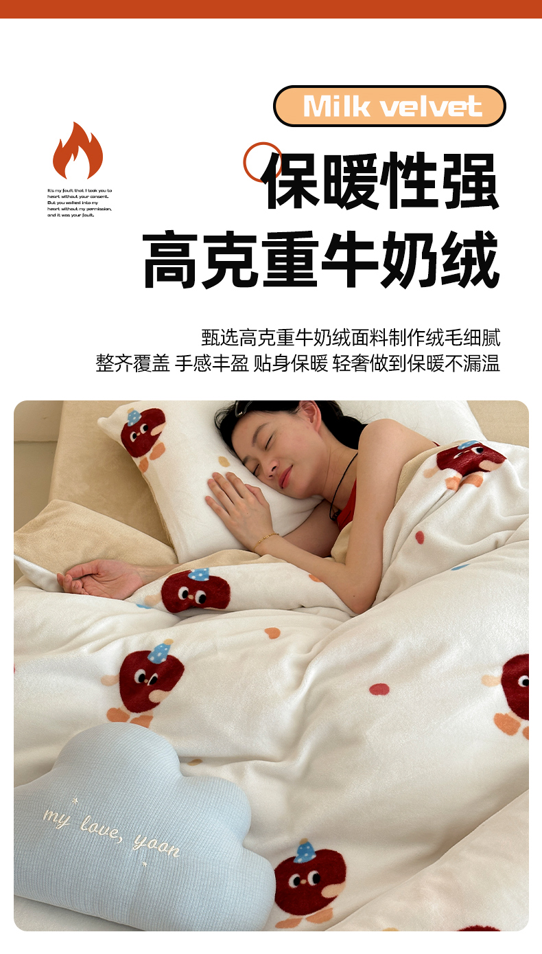 商品名称:时光里 2024新款ins风牛奶绒四件套 曲奇波比