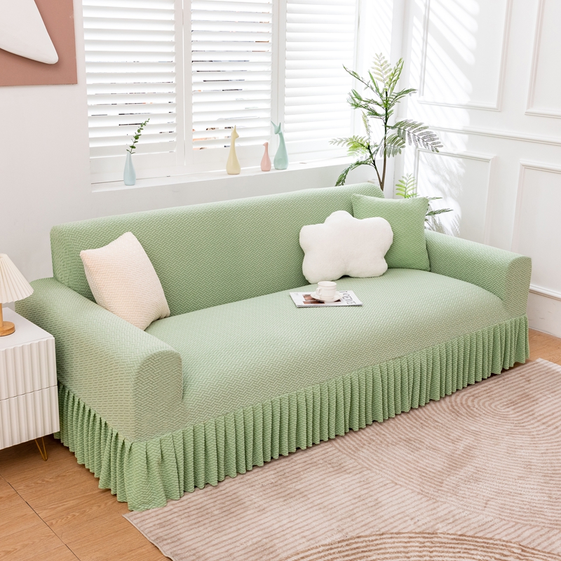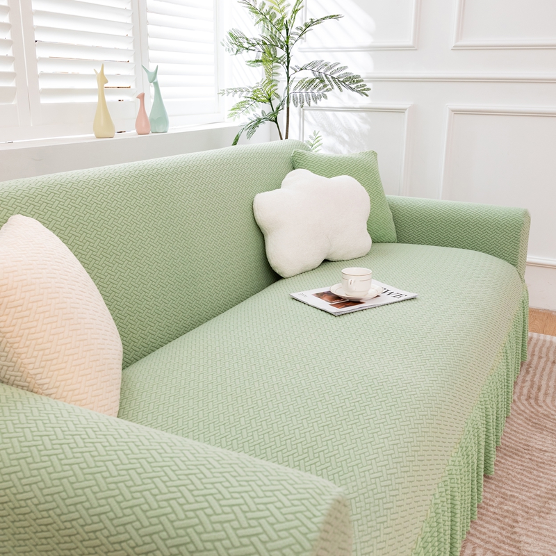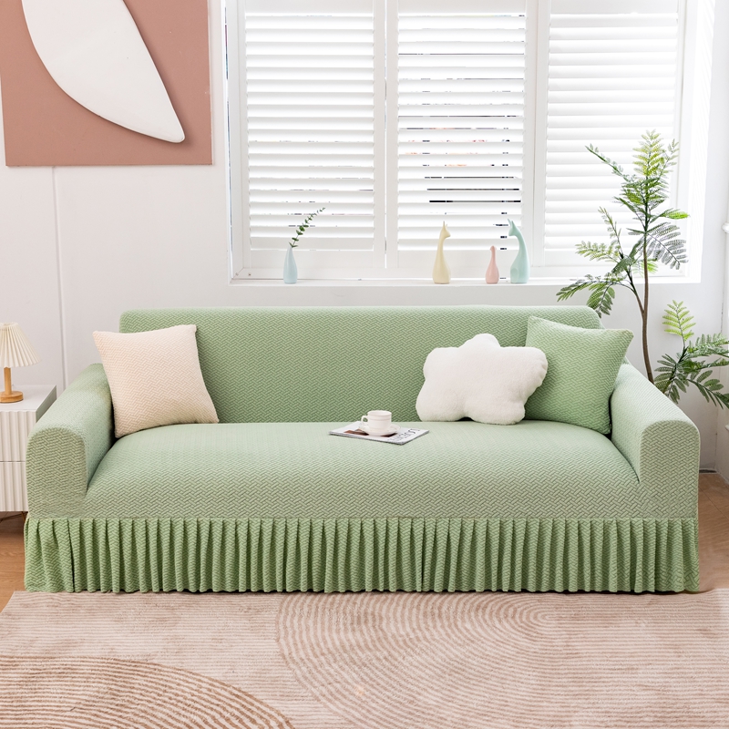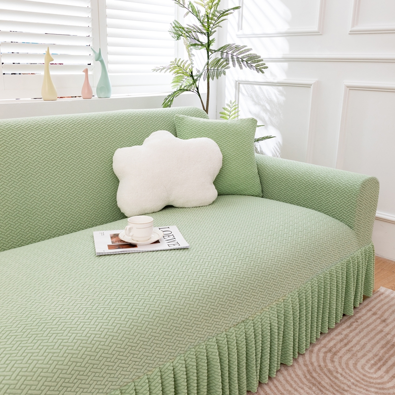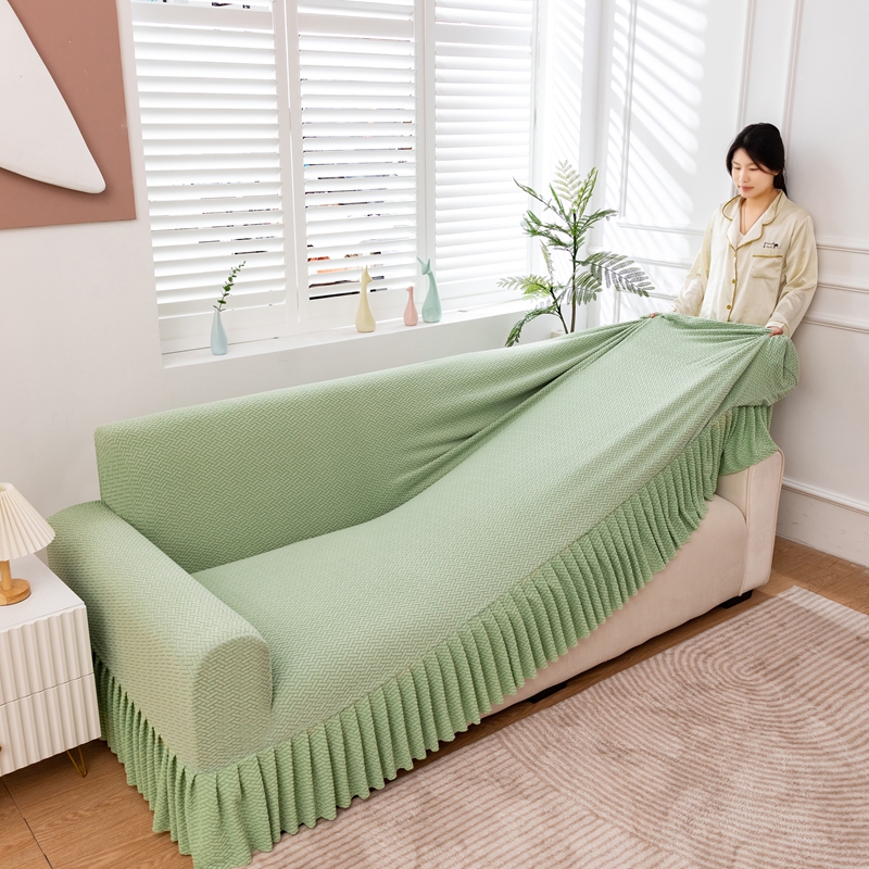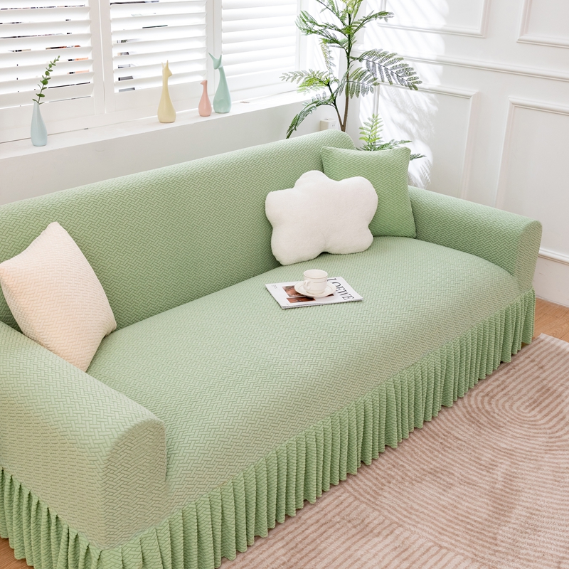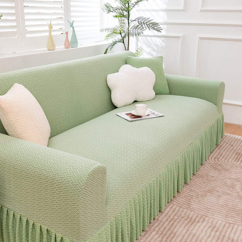 沐沐家纺 2026新款摇粒绒裙边沙发套 抹茶绿