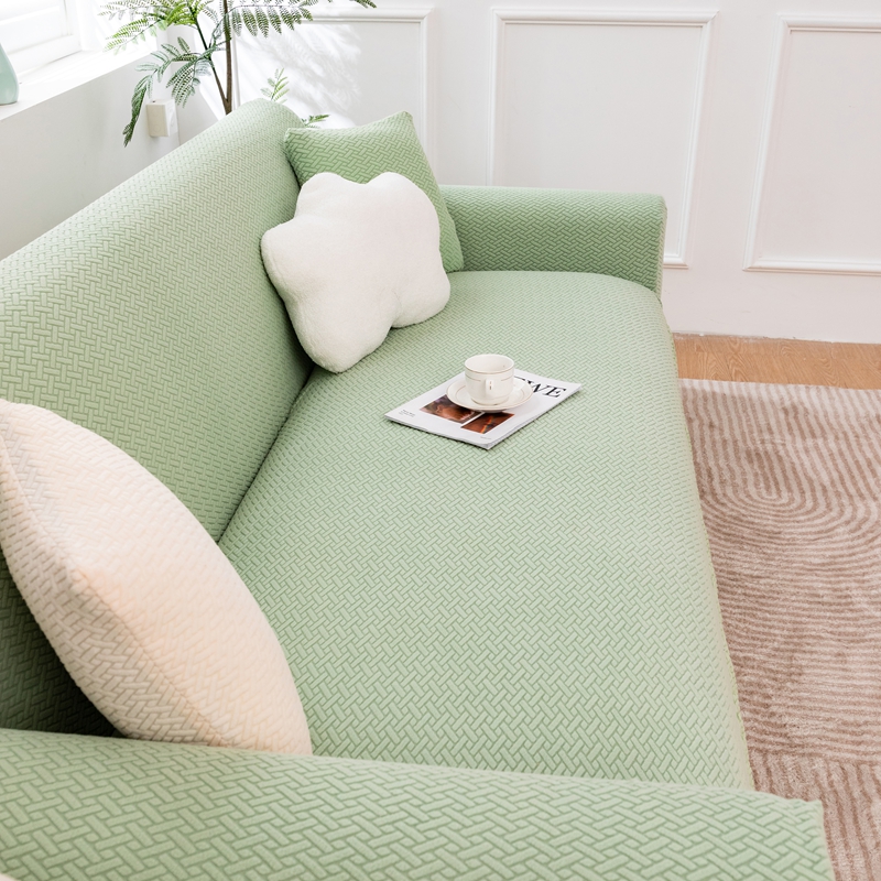 (总)沐沐家纺 2026新款双人位臻品提花沙发套,孔雀蓝,米白,浅灰,浅紫,青色