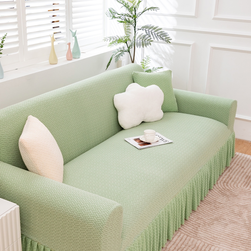 商品名称:沐沐家纺 2026新款摇粒绒裙边沙发套 抹茶绿