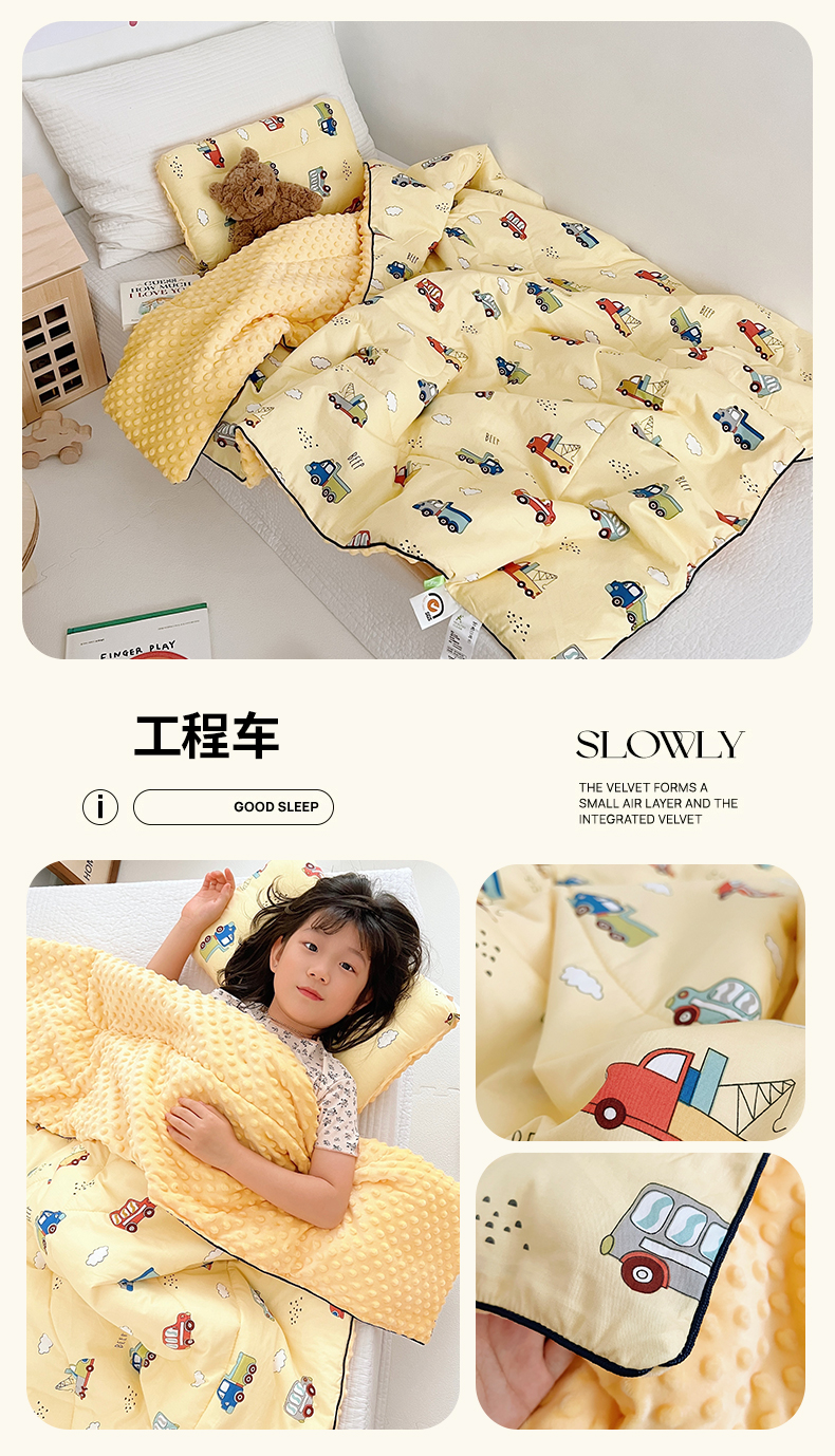 吉咪兔 24年新款幼儿园卡通全棉豆豆被冬季纯棉儿童豆豆毯加厚棉被安抚秋冬宝宝被子 工程车