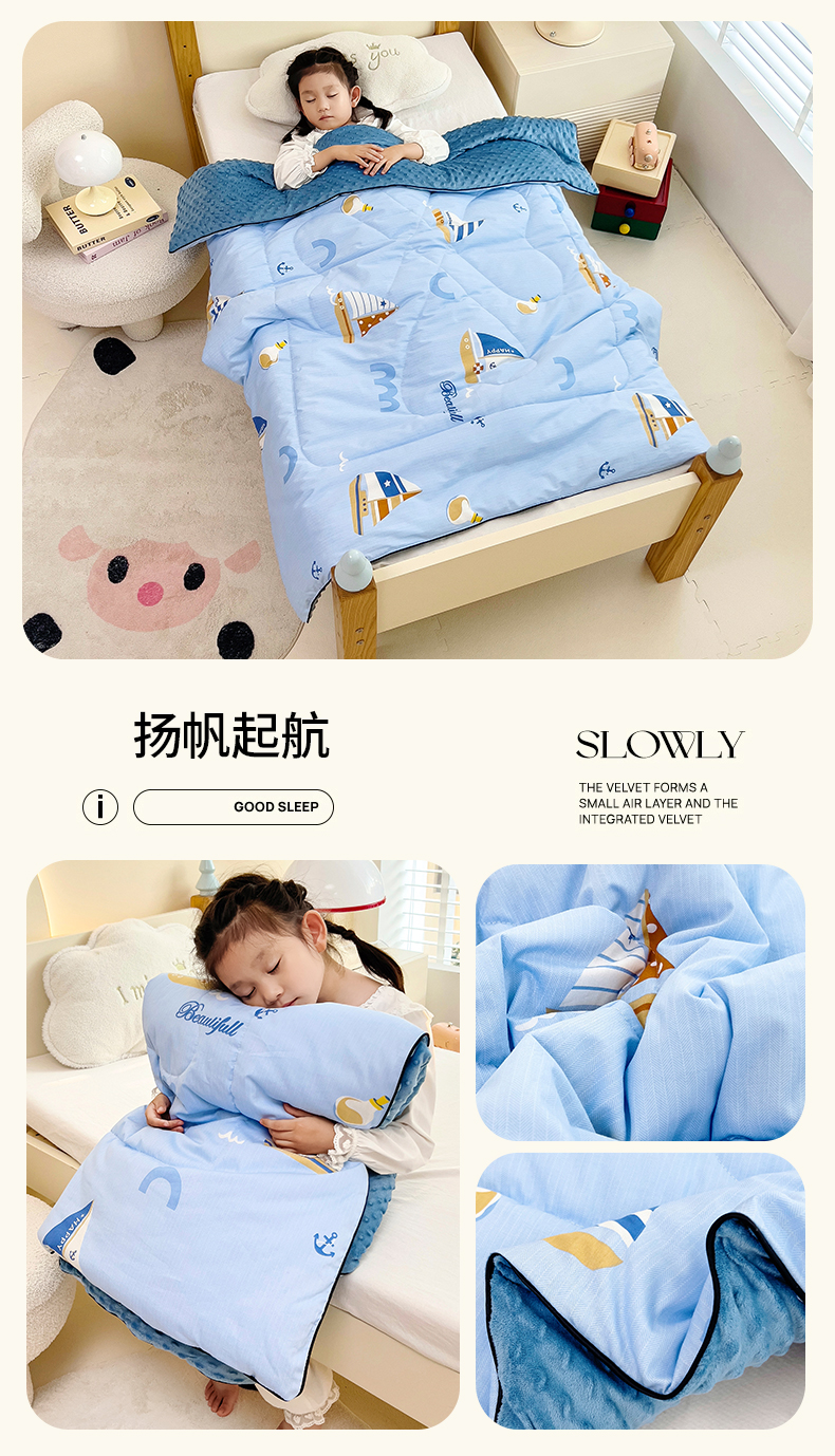 • 91家纺网 家纺一手货源 找家纺 吉咪兔 24年新款幼儿园卡通全棉豆豆被冬季纯棉儿童豆豆毯加厚棉被安抚秋冬宝宝被子 扬帆起航