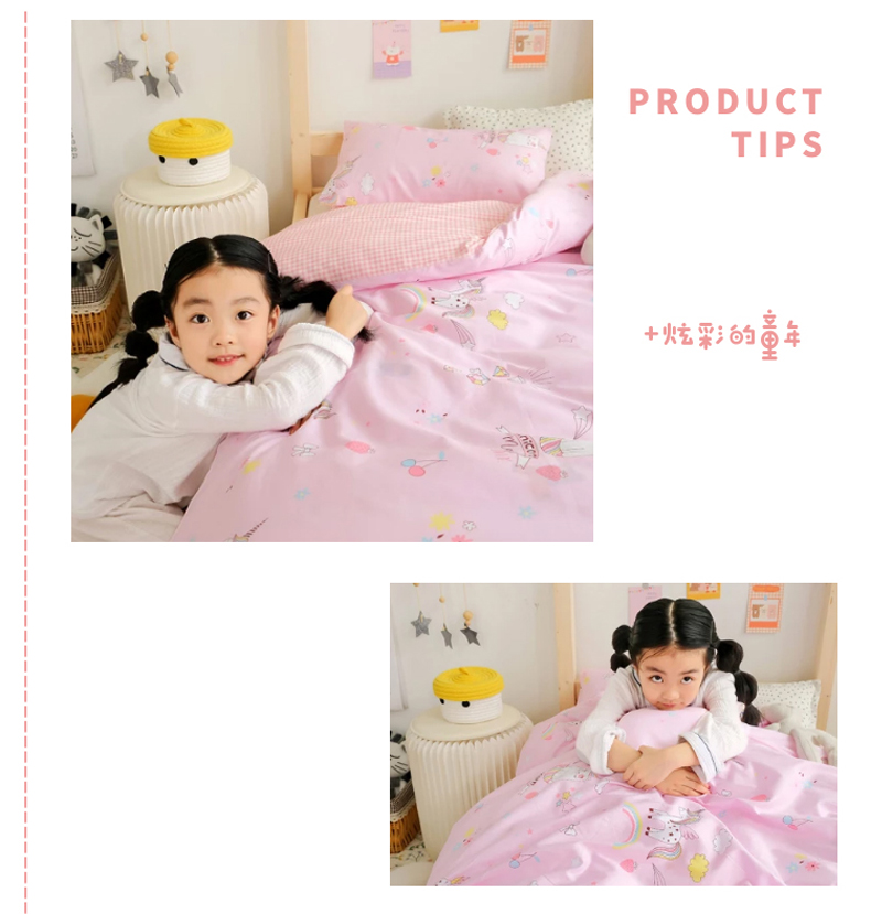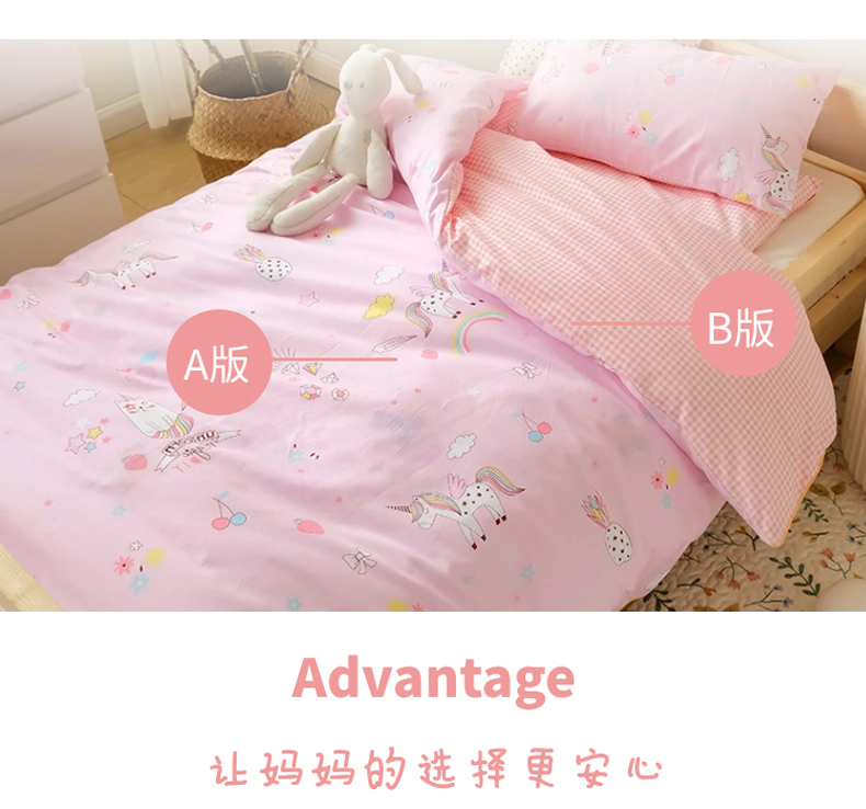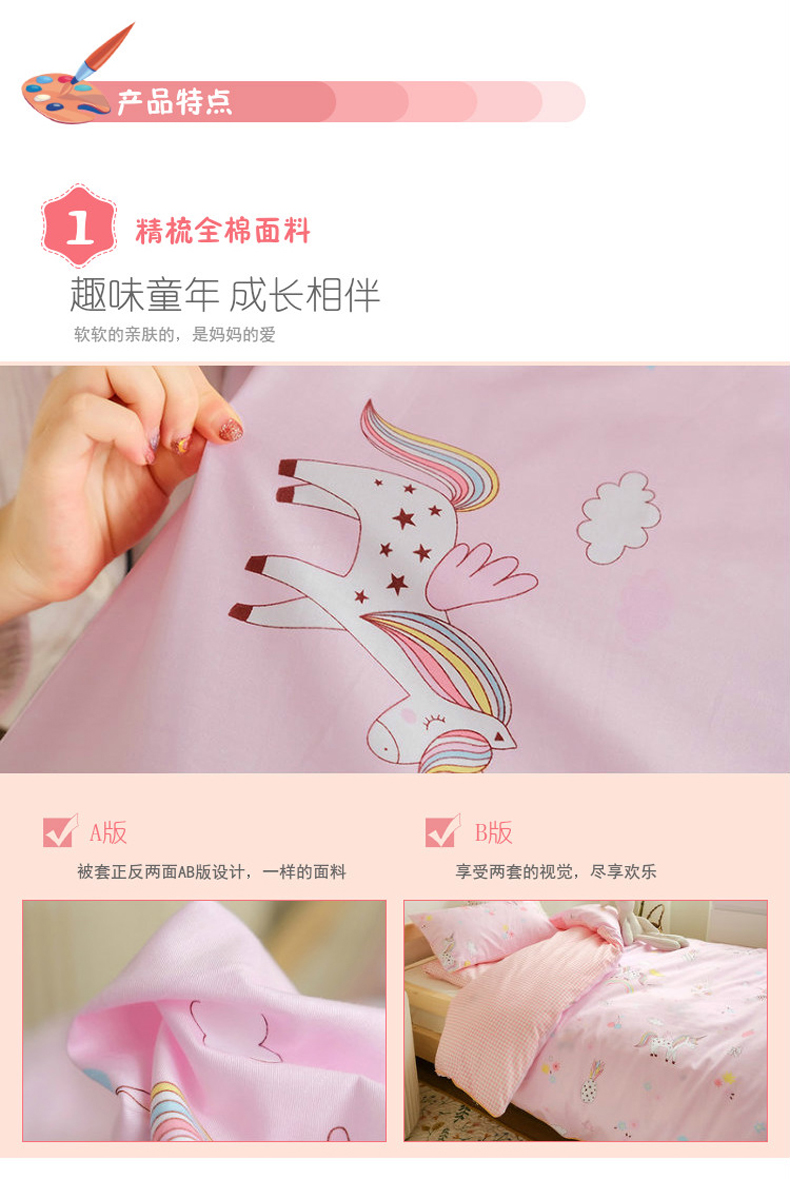 商品名称:十九色 新款正宗13372全棉全工艺印花幼儿园三件套独角马
