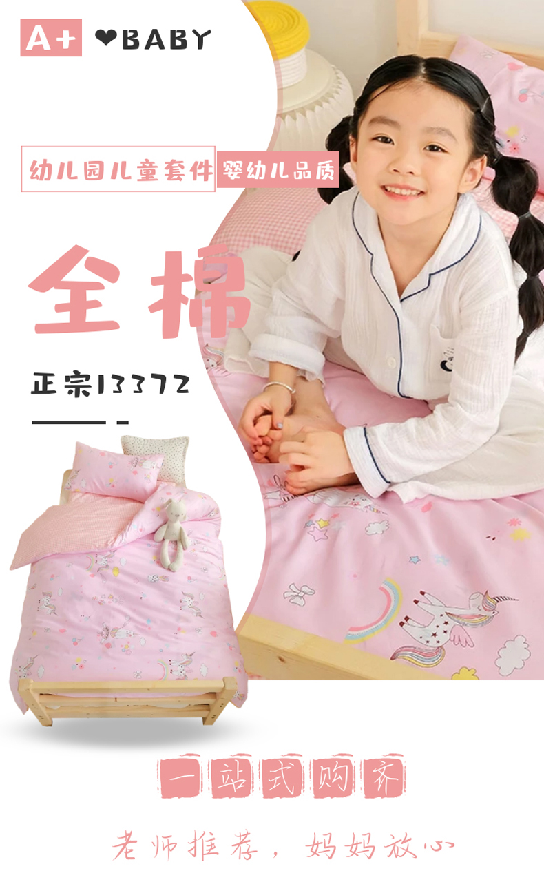 十九色 新款正宗13372全棉全工艺印花幼儿园三件套独角马