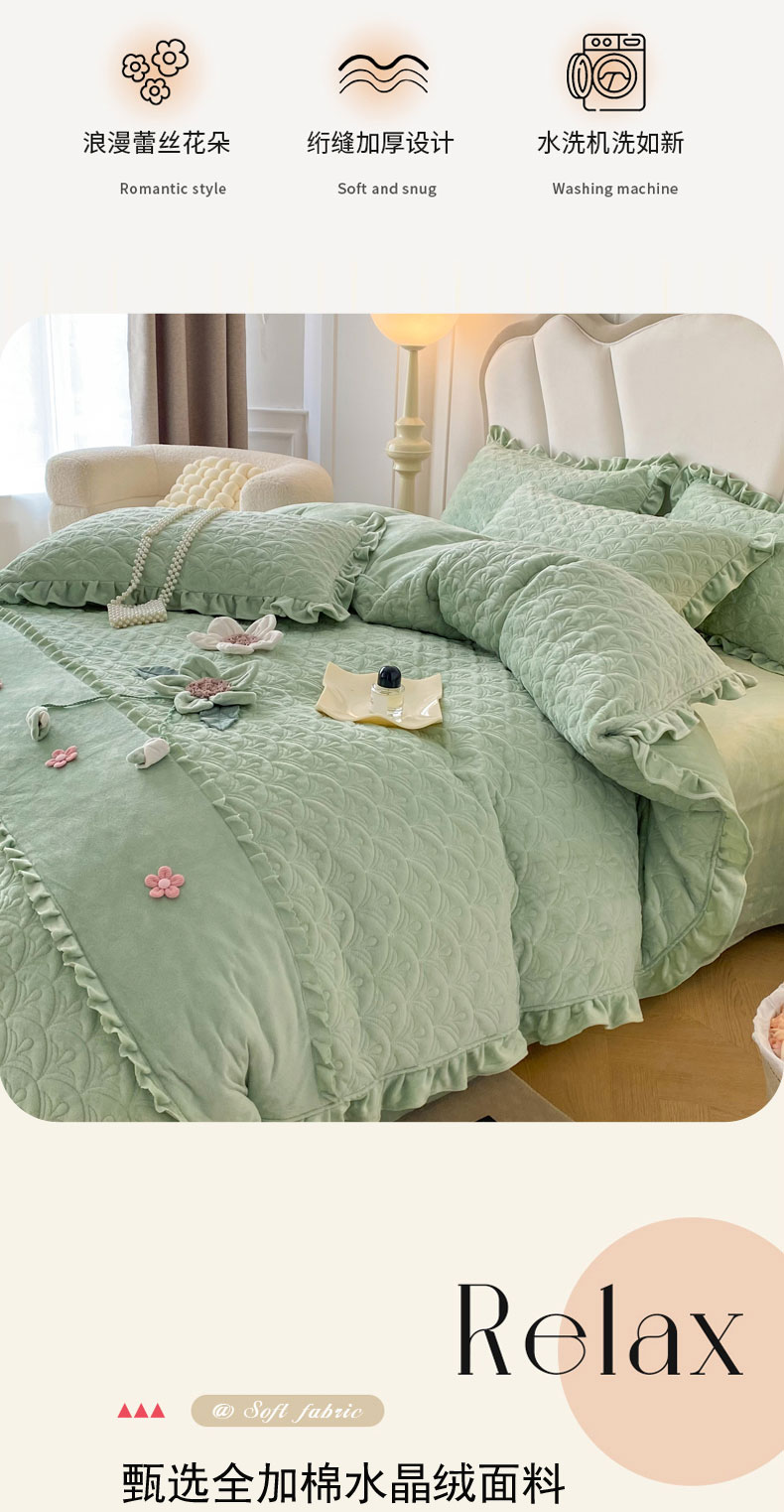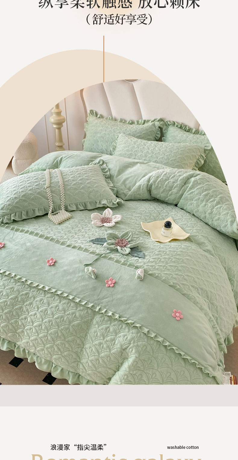 商品名称:小时代家纺 2024新款加厚宝宝绒全夹棉床盖四件套-冬之恋 冬之恋-绿色