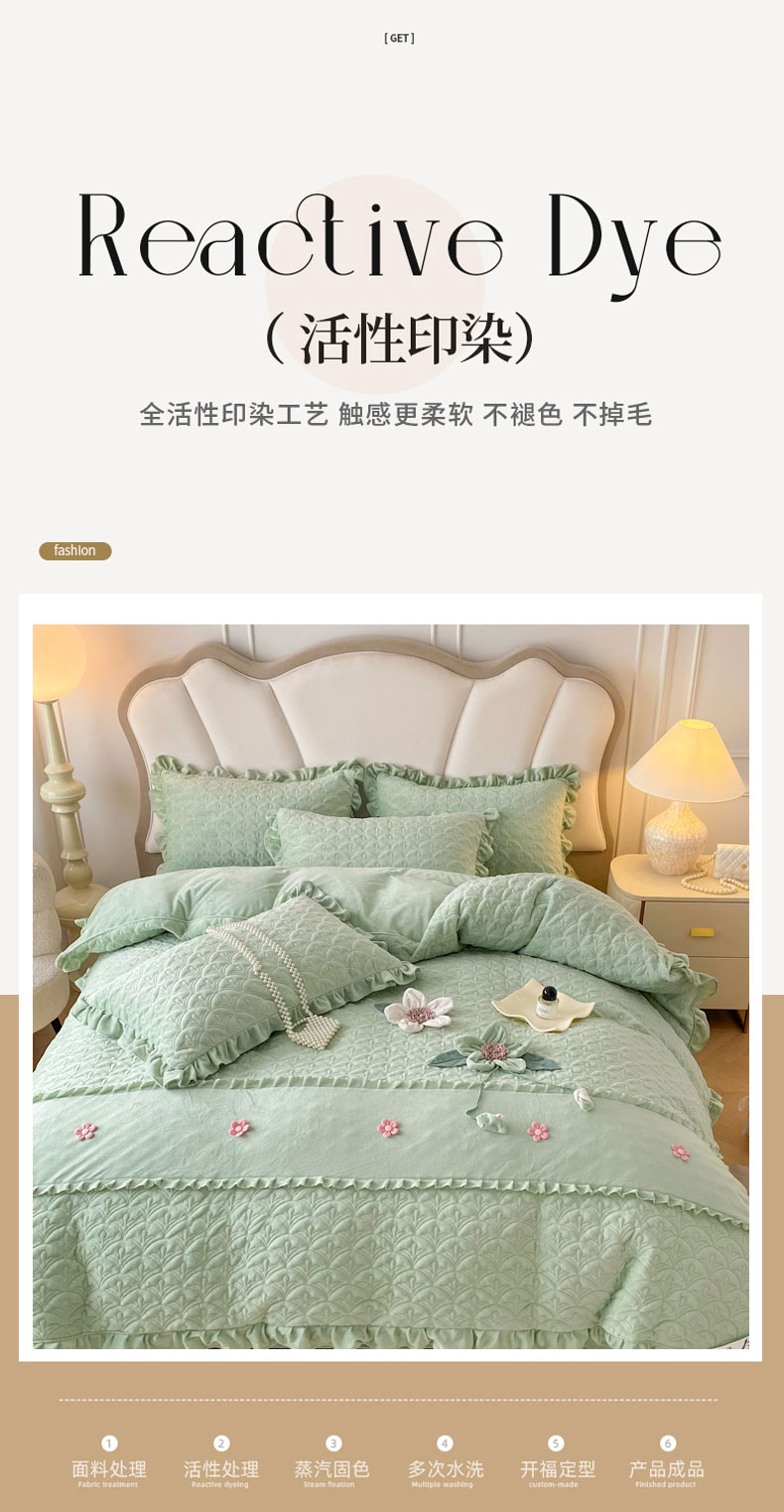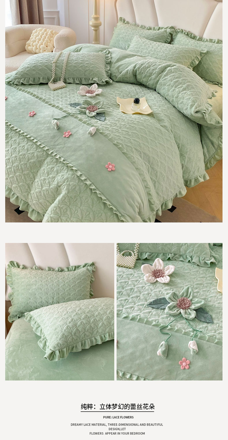 小时代家纺 2024新款加厚宝宝绒全夹棉床盖四件套-冬之恋 冬之恋-绿色