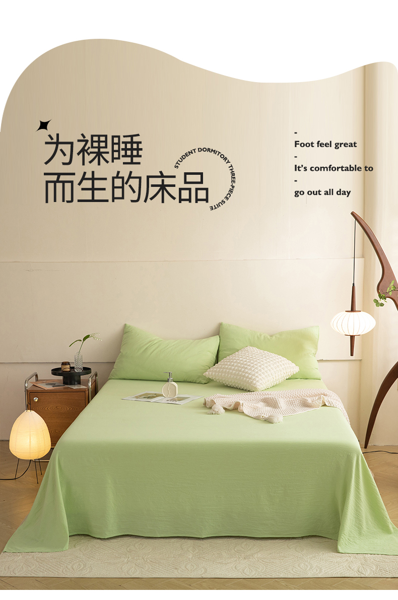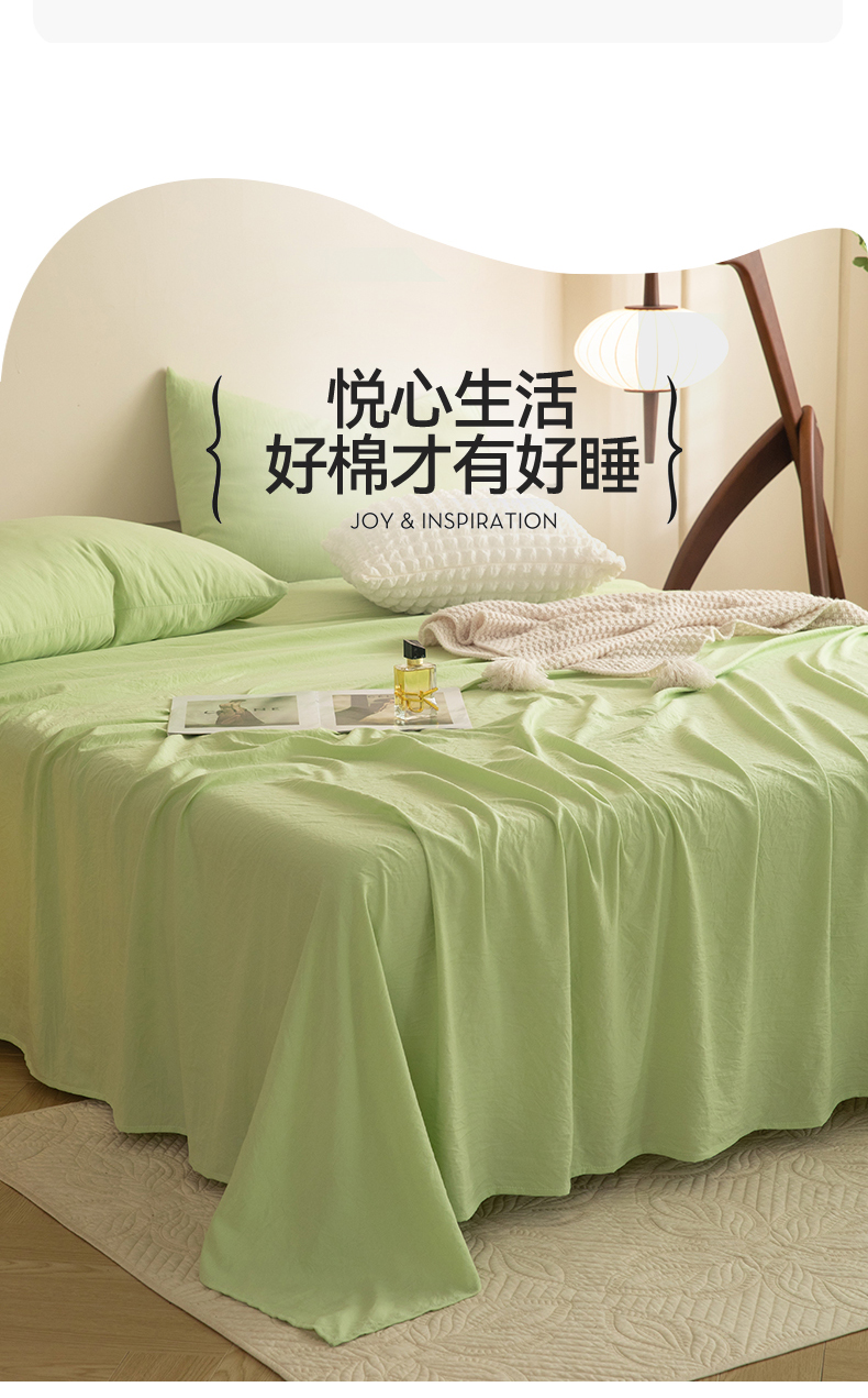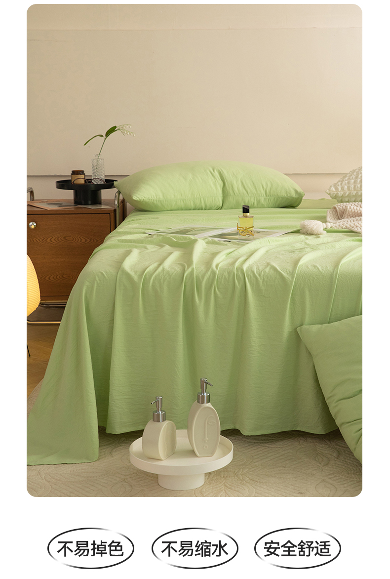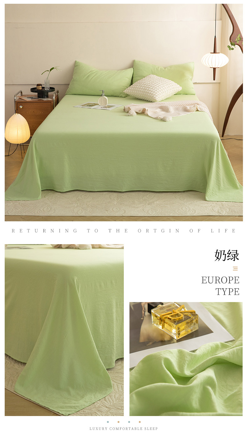 多品家纺 2024新款超柔水洗棉单床单 奶绿